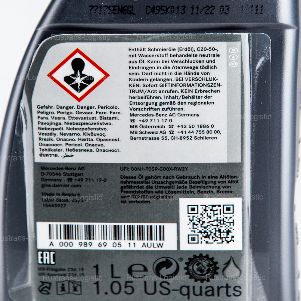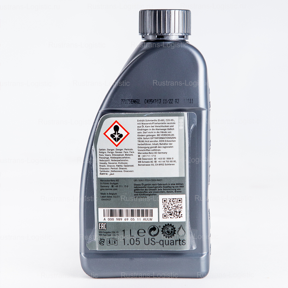 Купить Масло трансмиссионное ATF МВ 236.15 Mercedes-Benz (Бельгия), (1л), жидкость для 7-и ступенчатая АКПП 722.9 и АКПП 724.2 Мерседес A000989690511AULW, РТЛ