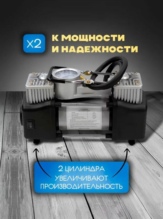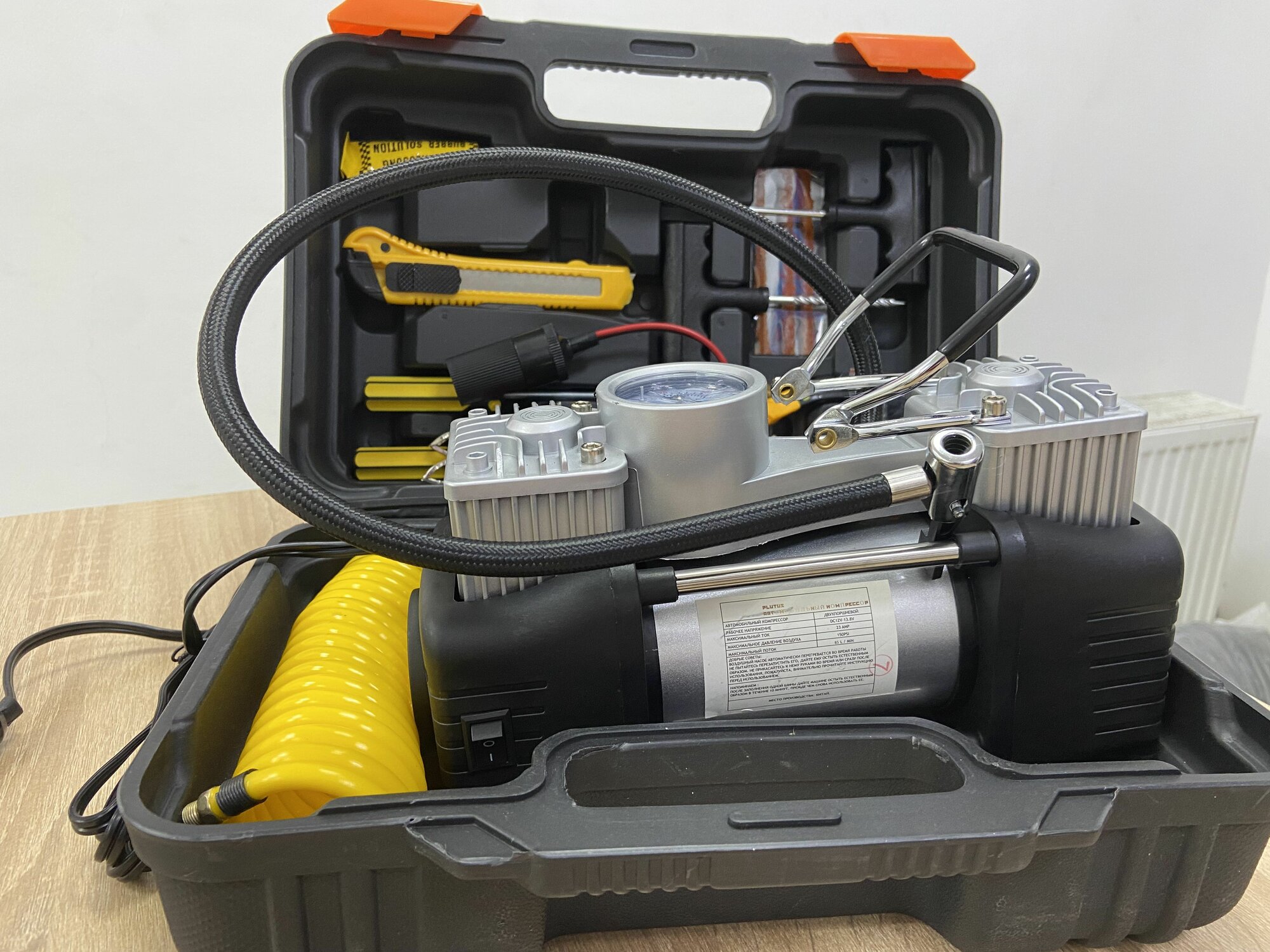 Компрессор автомобильный 75л/мин (2-x цилиндровый) кейс, набор-ремкомплект-инструмент шнур 5м (крокодилы) подкачка колеса до 22" интересное: