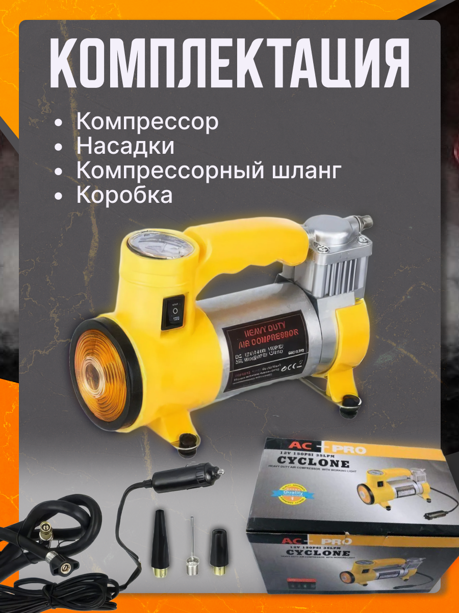 Ниже Вы можете прочитать отзывы на Компрессор автомобильный Cyclone, ознакомится с подробными характеристиками, посмотреть интересные обзоры и фотографии на Компрессор автомобильный Cyclone.