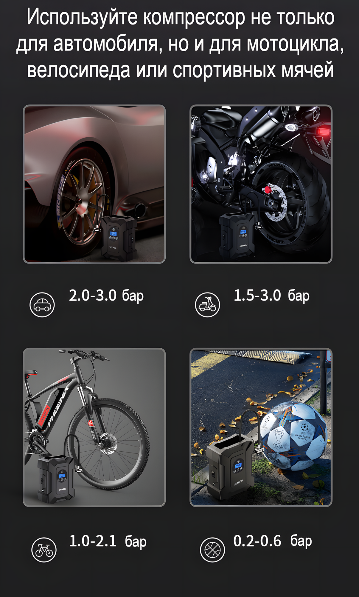 Портативный компрессор с набором инструментов в кейсе, аналоговый дисплей, черный интересное: