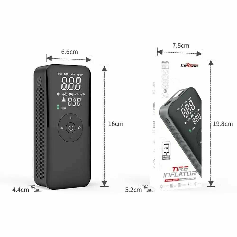 Автомобильный беспроводной компрессор цифровой CARSUN C3106, с фонариком, с автоспопом, с функцией Power Bank интересное: