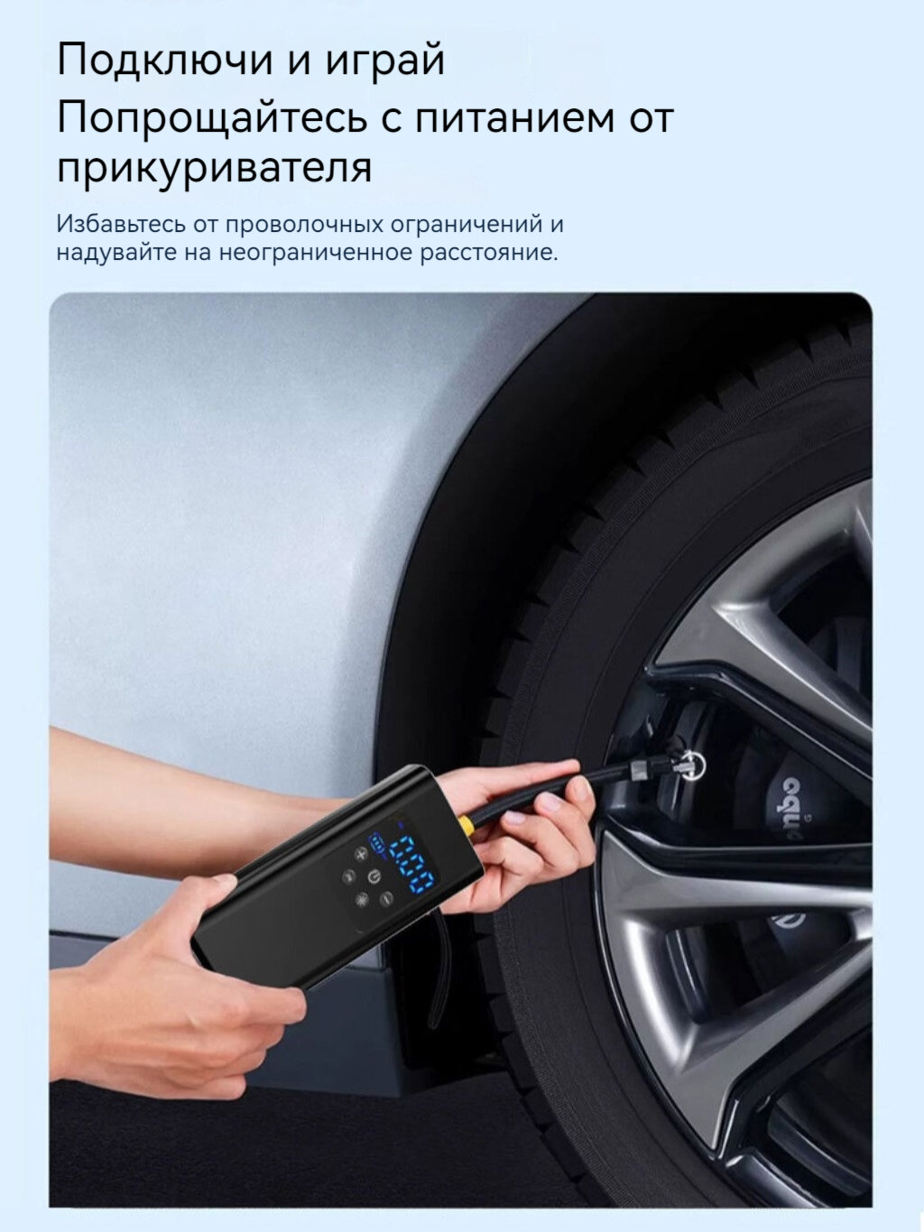 Насос Автомобильный с LED экраном, Автомобильные компрессоры, многофункциональный, беспроводной