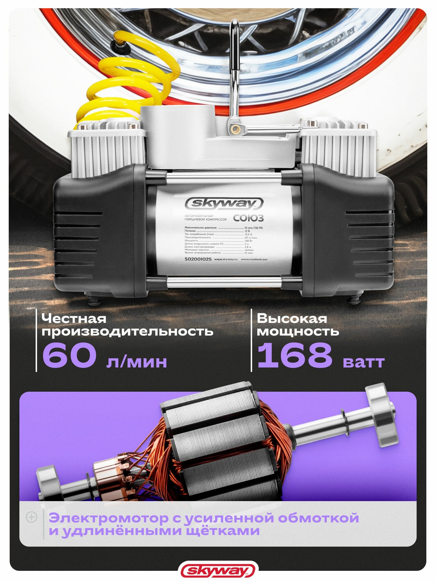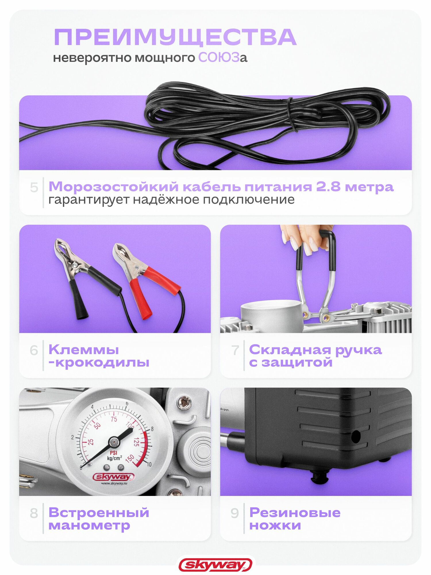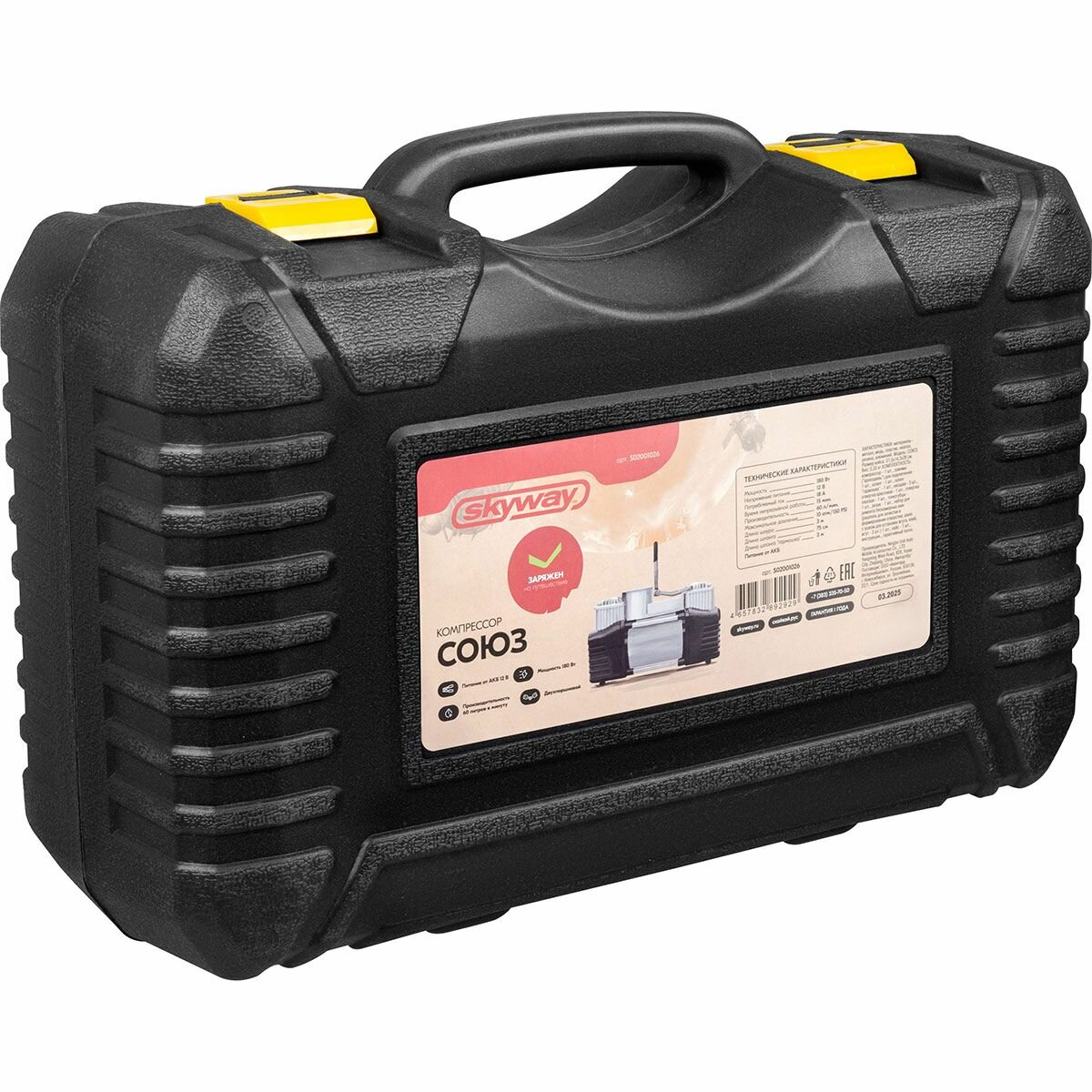 Компрессор автомобильный двухпоршневой "Союз" в кейсе с инструментами и набором для ремонта шин интересное: