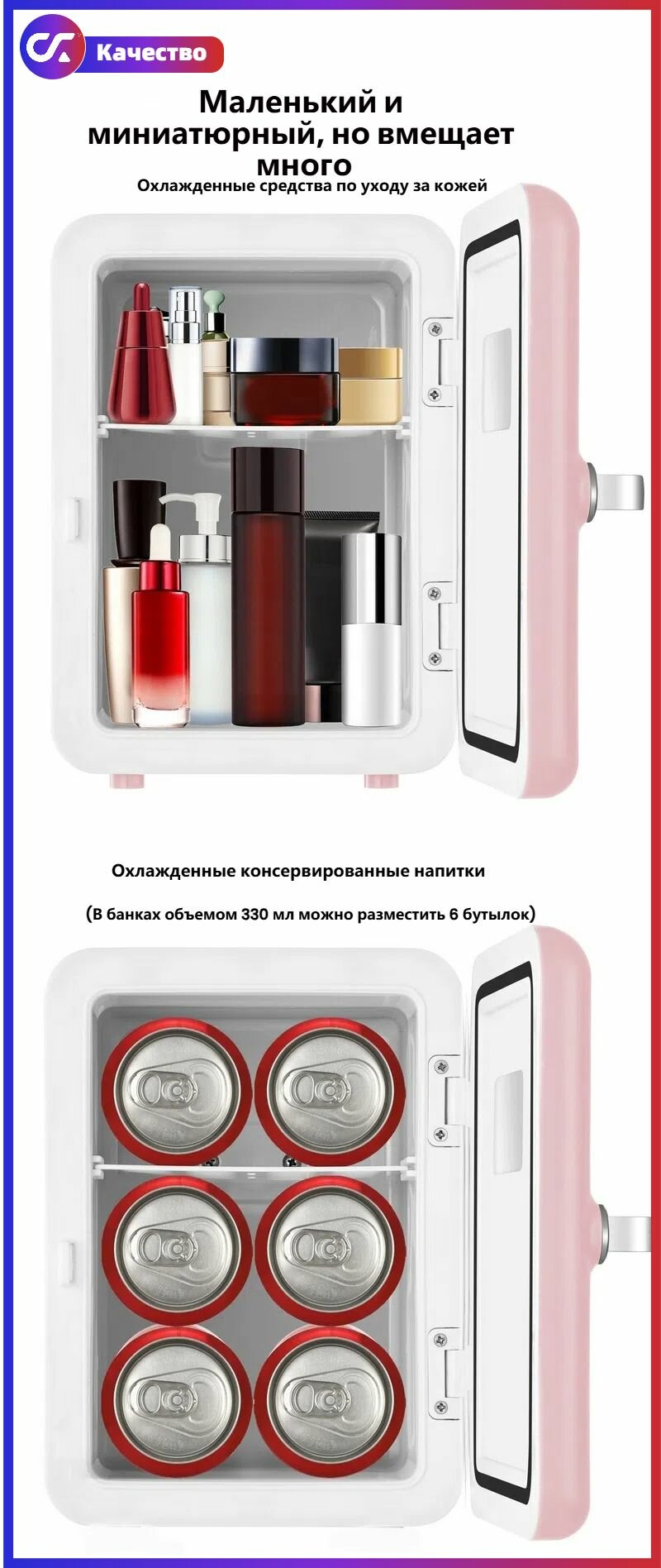 Мини-холодильник для косметики, 8л, пластик, белый, с функцией охлаждения и нагрева интересное: