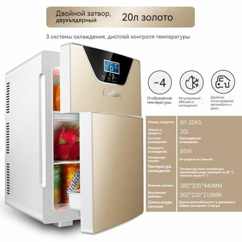 Мини-холодильник Хилап, для авто и дома, 20л, цвет золотистый интересное:
