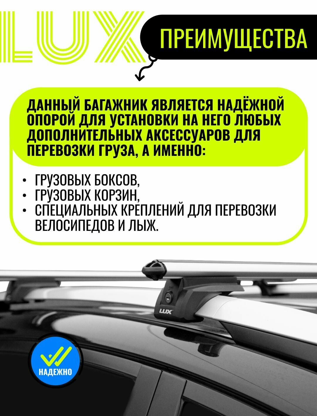 Багажник LUX элегант на крышу для Chevrolet Captiva / Шевроле Каптива внедорожник 2006-2016 на классические рейлинги - 120см аэродинамические дуги + замок интересное: