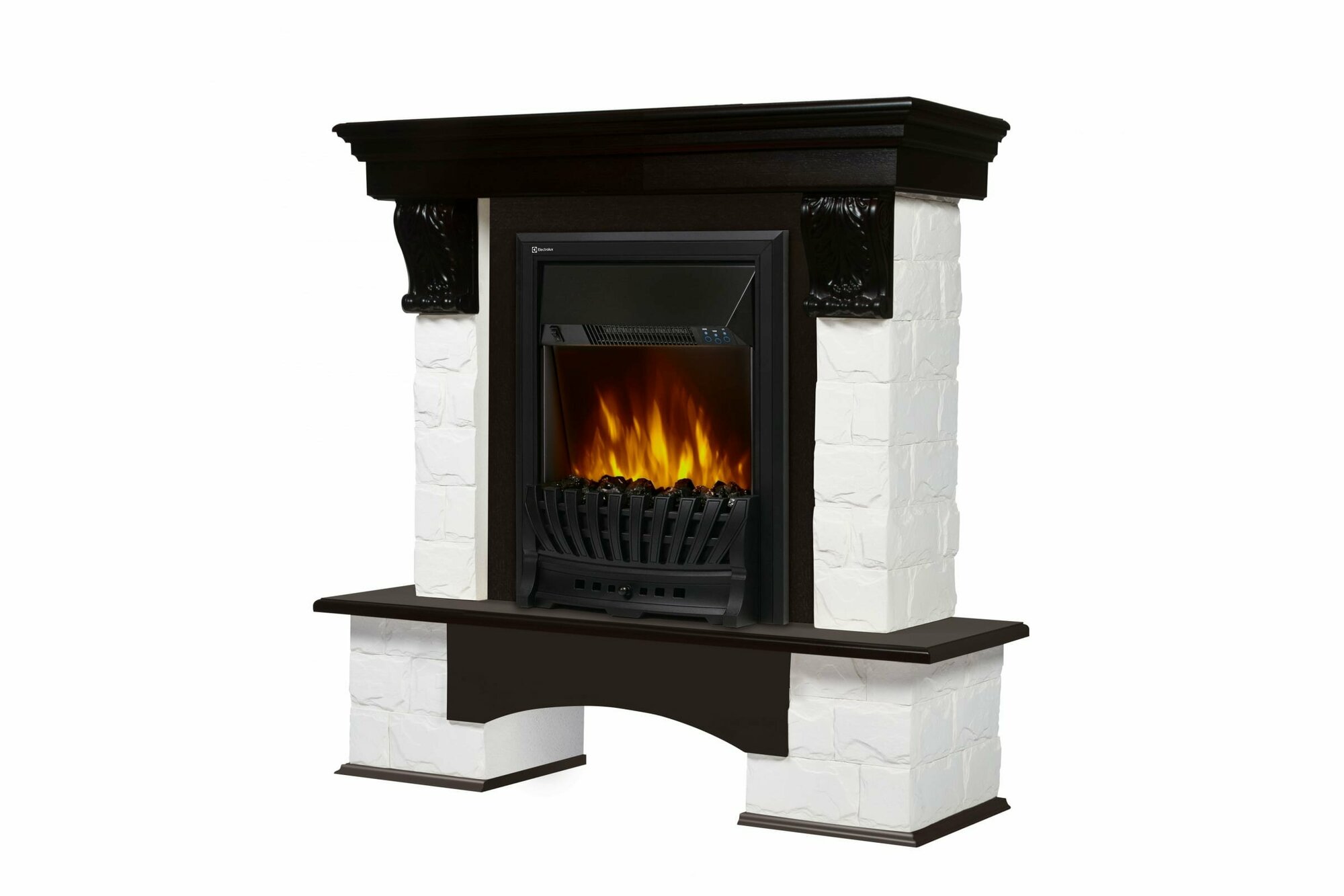 Портал Firelight Forte Classic камень белый, шпон темный дуб, Белый