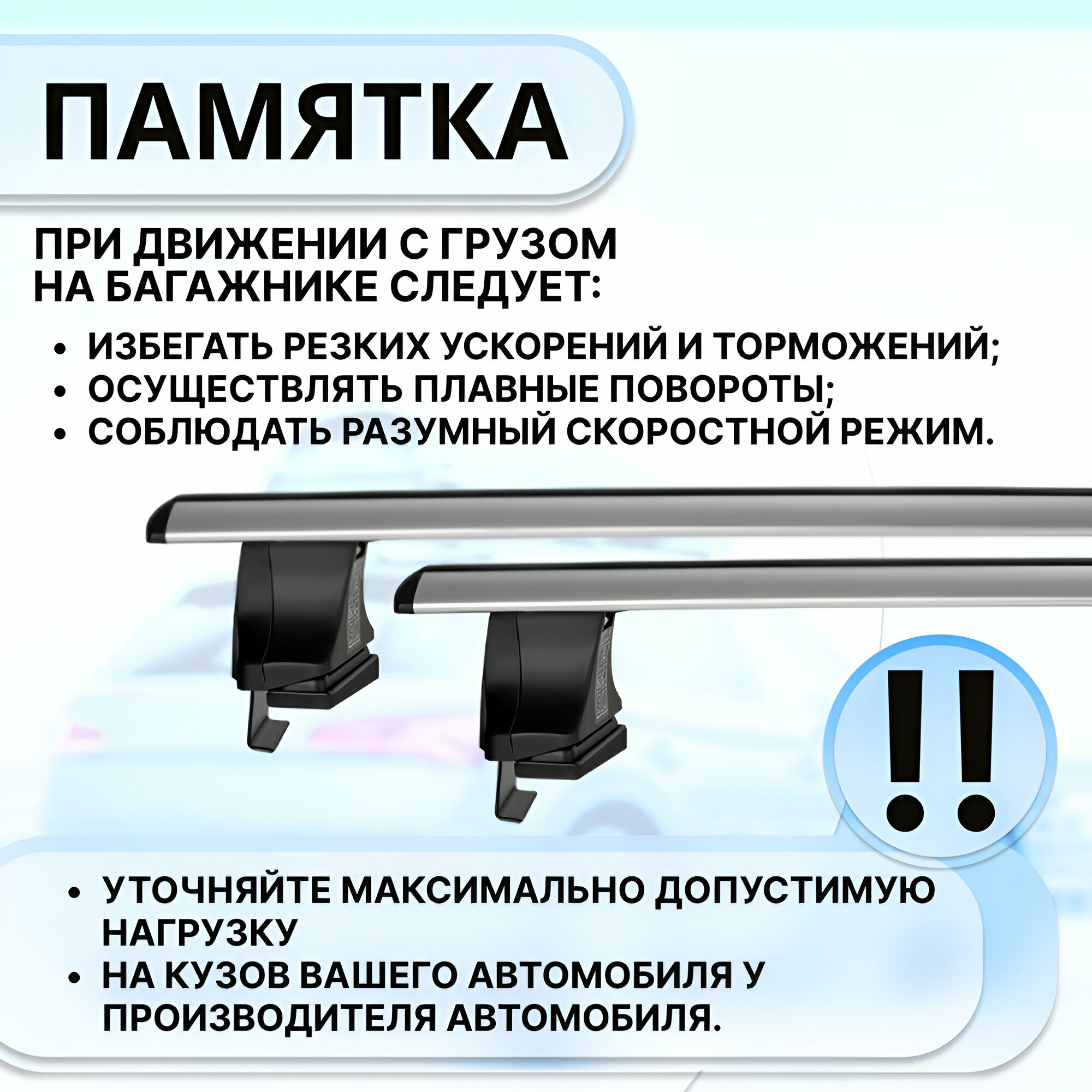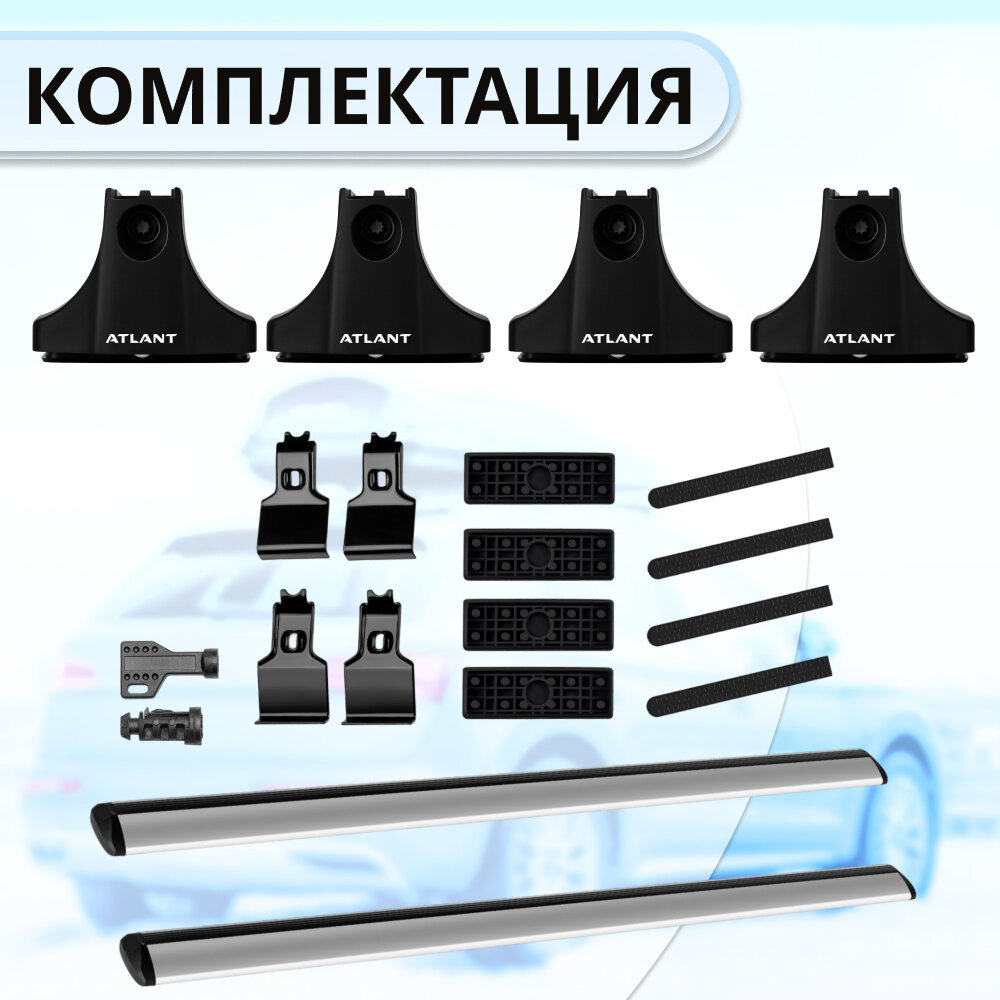 | Подробная комплектация | Комплект опор (4 шт), комплект дуг (2 шт), комплект адаптеров (1 шт), ключ для затяжки, инструкция. |