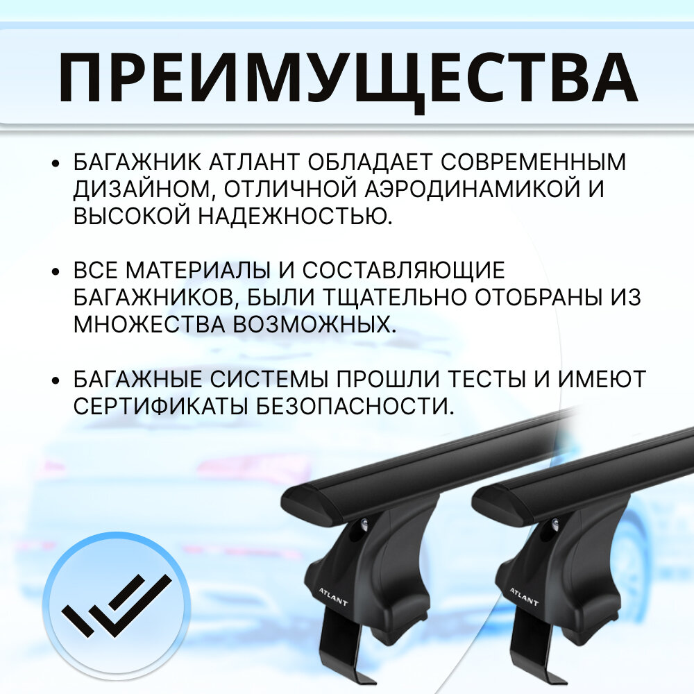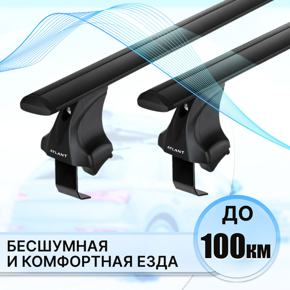 Купить Багажник ATLANT на гладкую крышу SKODA Fabia 5-дв. универсал 07-15, дуги алюминиевые Крыло черное 75 кг. 126 см + замок