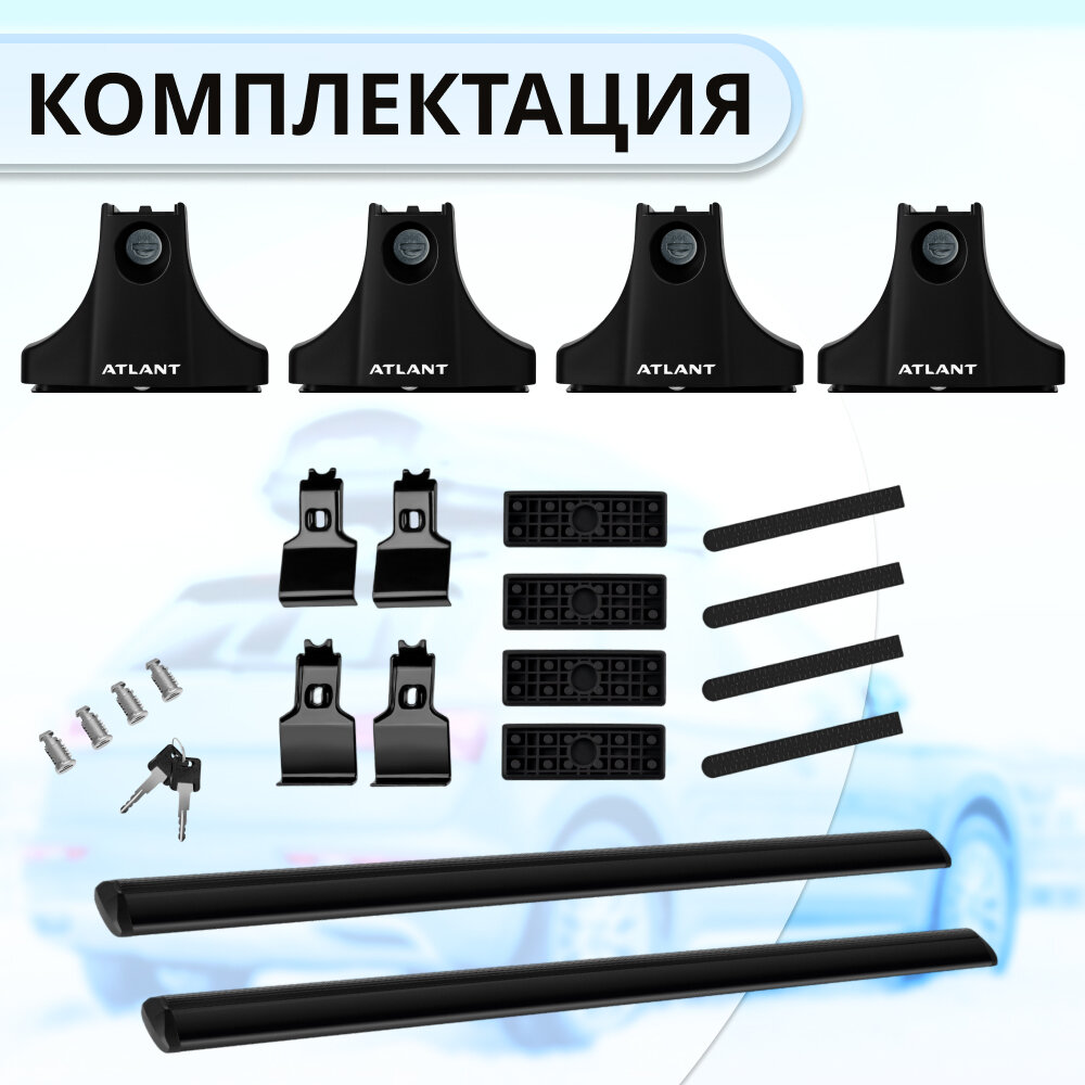 | Подробная комплектация | Комплект опор (4 шт), комплект дуг (2 шт), комплект адаптеров (1 шт), комплект личинок с ключами, ключ для затяжки, инструкция. |