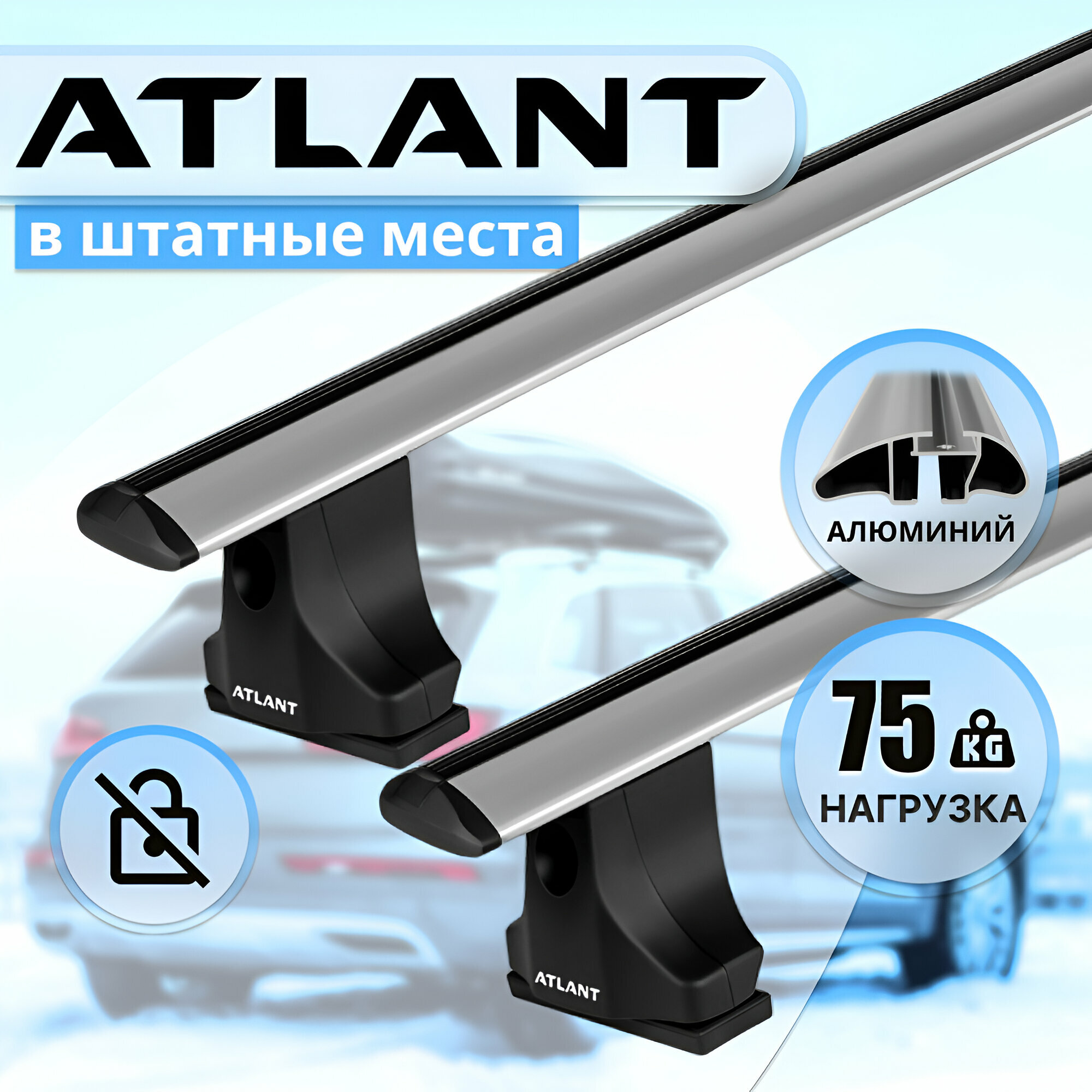Багажник ATLANT в штатные места FORD Focus С-Max 5-дв минивэн, 2003-2010 гг, дуги алюминиевые Крыло 75 кг. 126 см интересное: