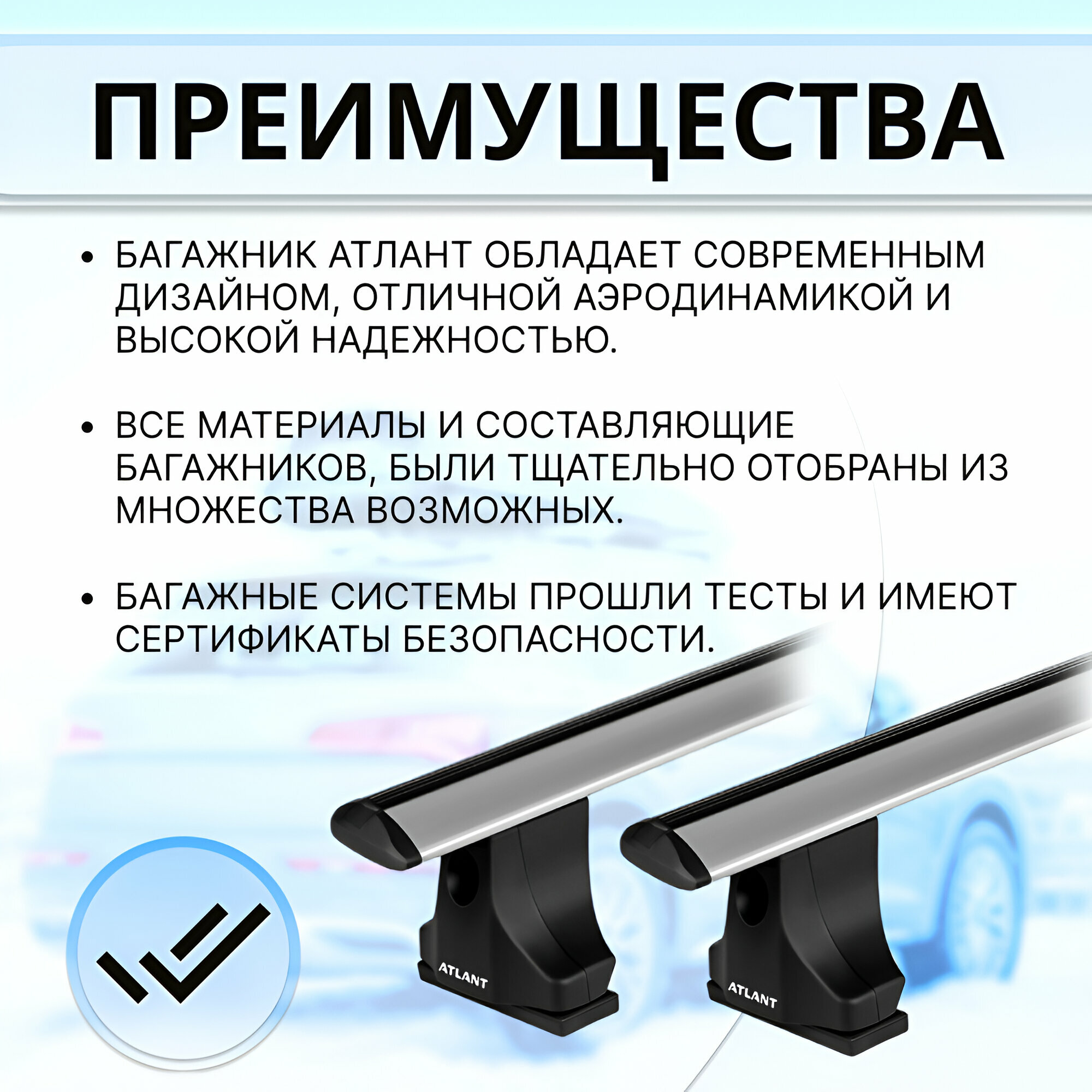 | Подробная комплектация | Комплект опор (4 шт), комплект дуг (2 шт), комплект адаптеров (1 шт), ключ для затяжки, инструкция. |