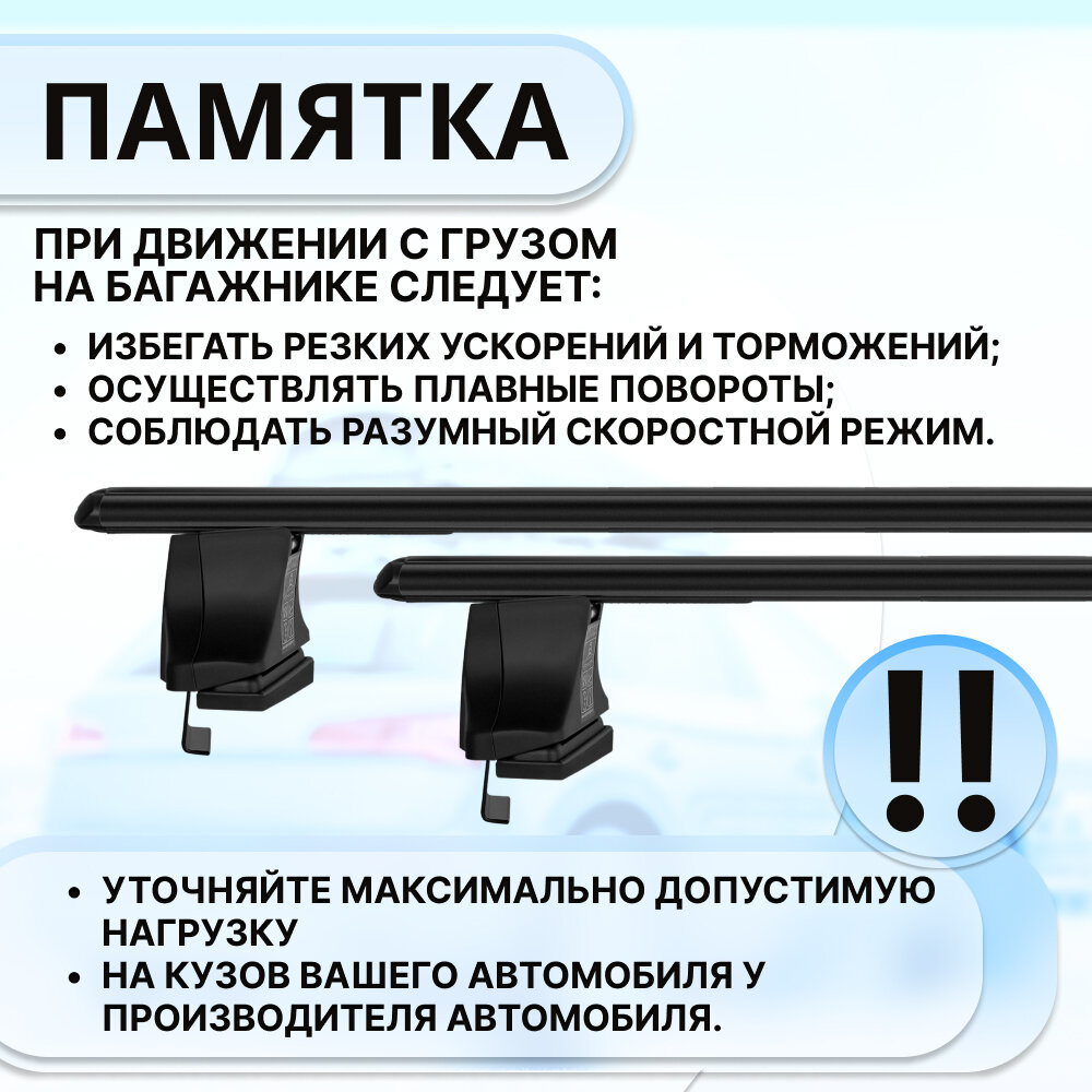 | Подробная комплектация | Комплект опор (4 шт), комплект дуг (2 шт), комплект адаптеров (1 шт), комплект личинок с ключами, ключ для затяжки, инструкция. |