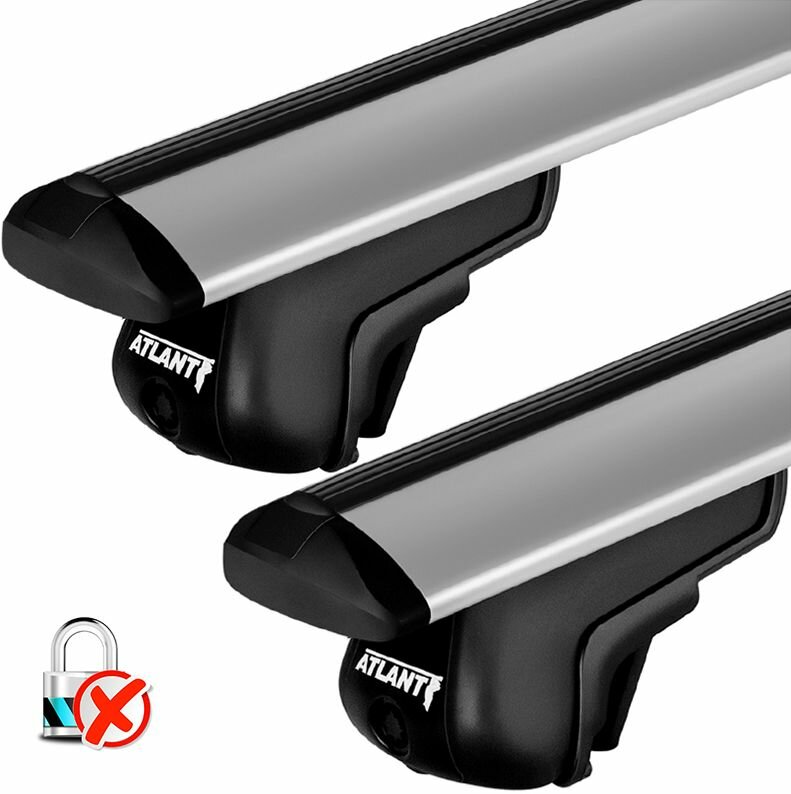 Багажник Атлант для BMW X3 / БМВ X3 Кроссовер 2003-2009 на рейлинги - крыловидная дуга, серебристая - без замка