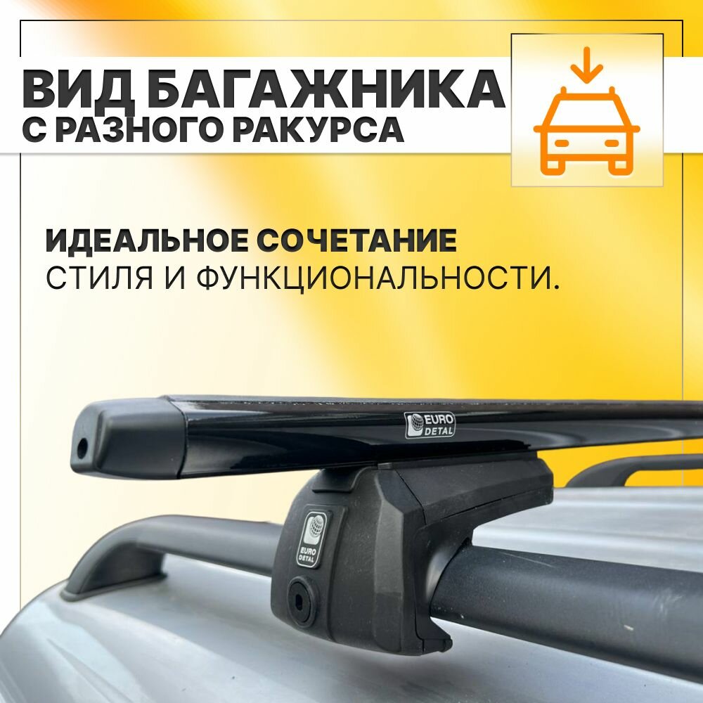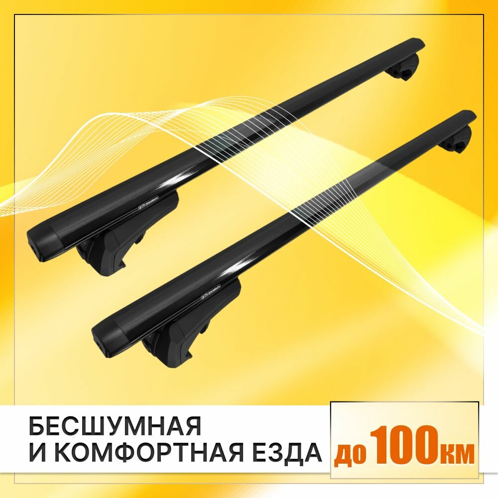Багажник на рейлинги Хонда Пилот 2002-2015 кроссовер / Honda Pilot Багажник на крышу с крыловидными черными поперечинами / Автобагажник без замка / Евродеталь