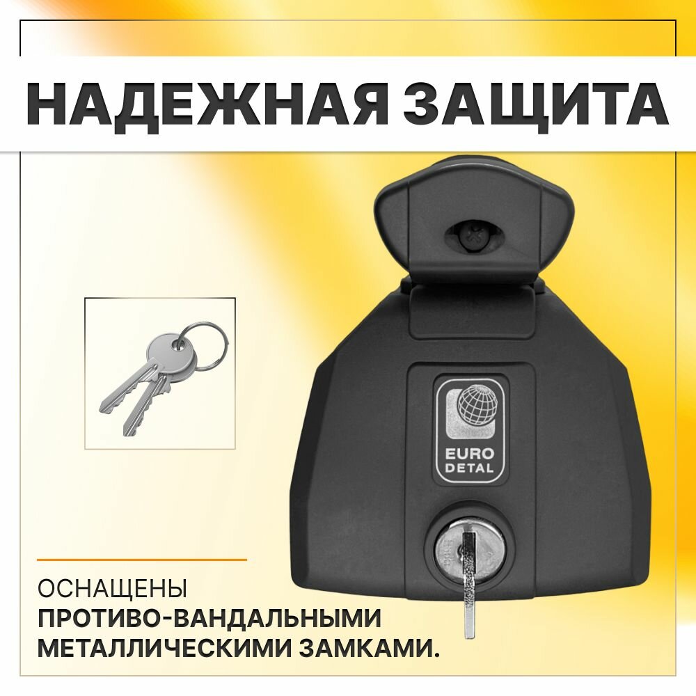 Багажник на рейлинги Хонда Пилот 2002-2015 кроссовер / Honda Pilot Багажник на крышу с крыловидными черными поперечинами / Автобагажник с замками / Евродеталь