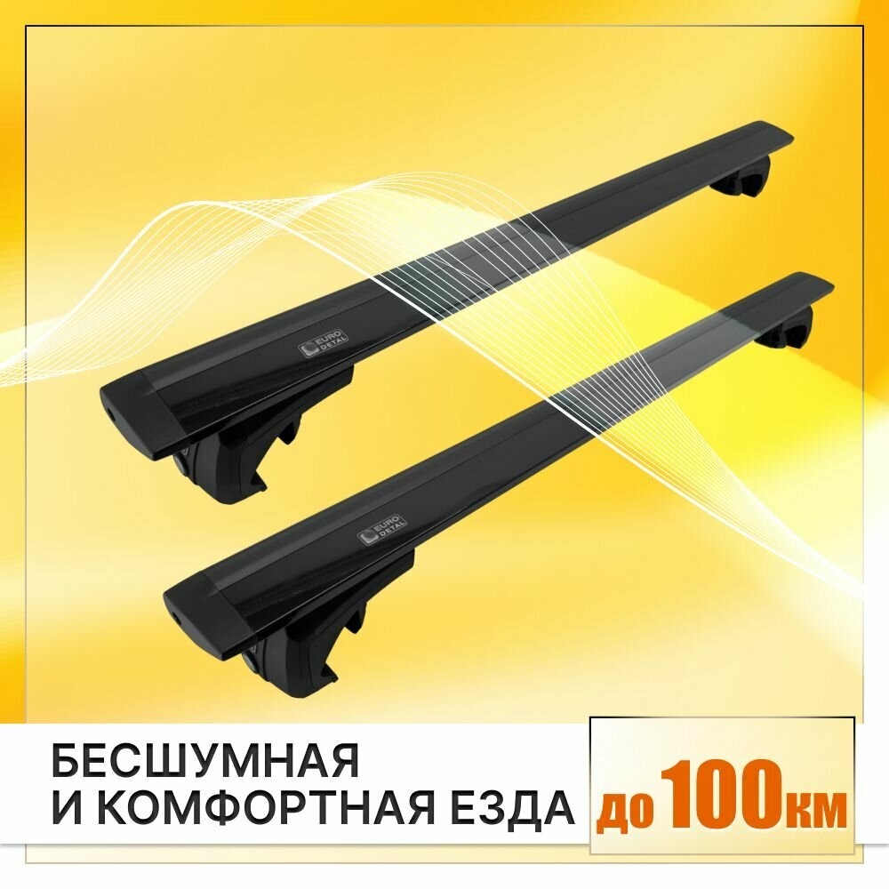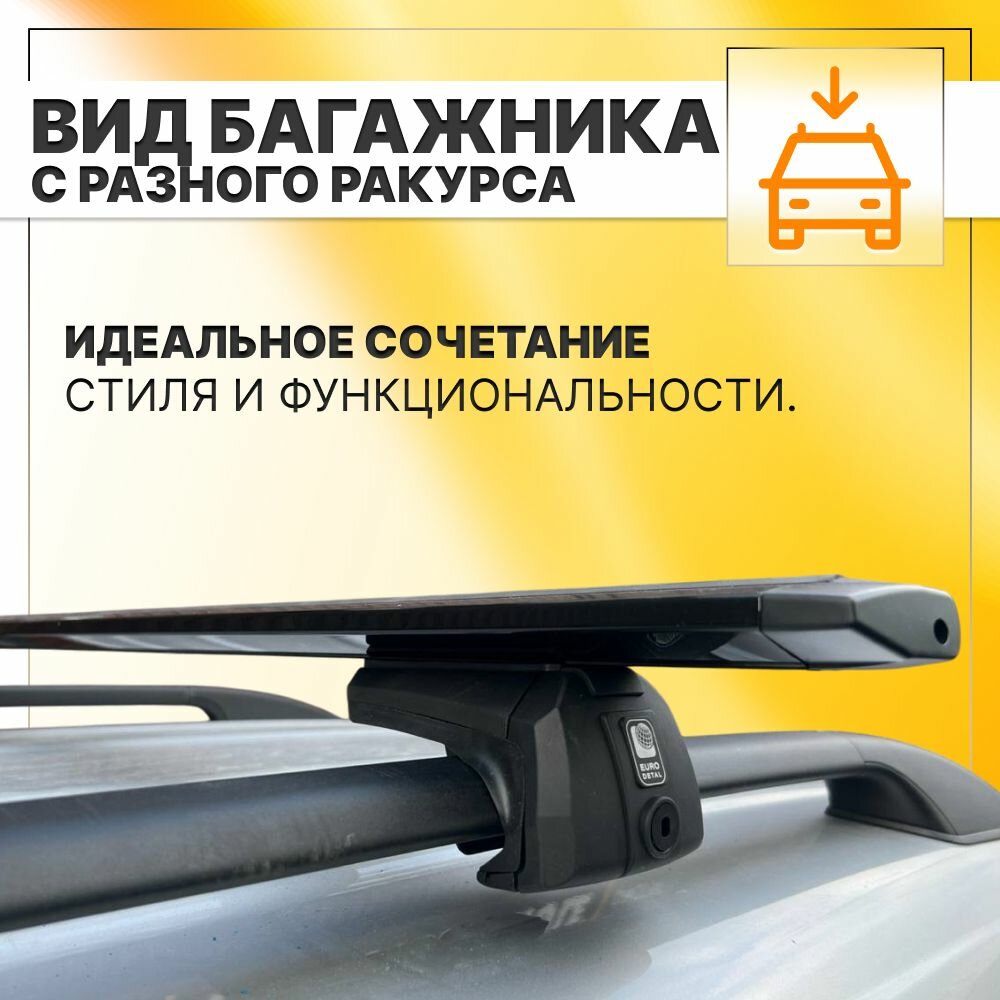 Багажник на рейлинги Хонда Пилот 2002-2015 кроссовер / Honda Pilot Багажник на крышу с крыловидными черными поперечинами / Автобагажник с замками / Евродеталь