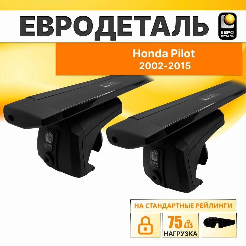 Купить Багажник на рейлинги Хонда Пилот 2002-2015 кроссовер / Honda Pilot Багажник на крышу с крыловидными черными поперечинами / Автобагажник без замка / Евродеталь