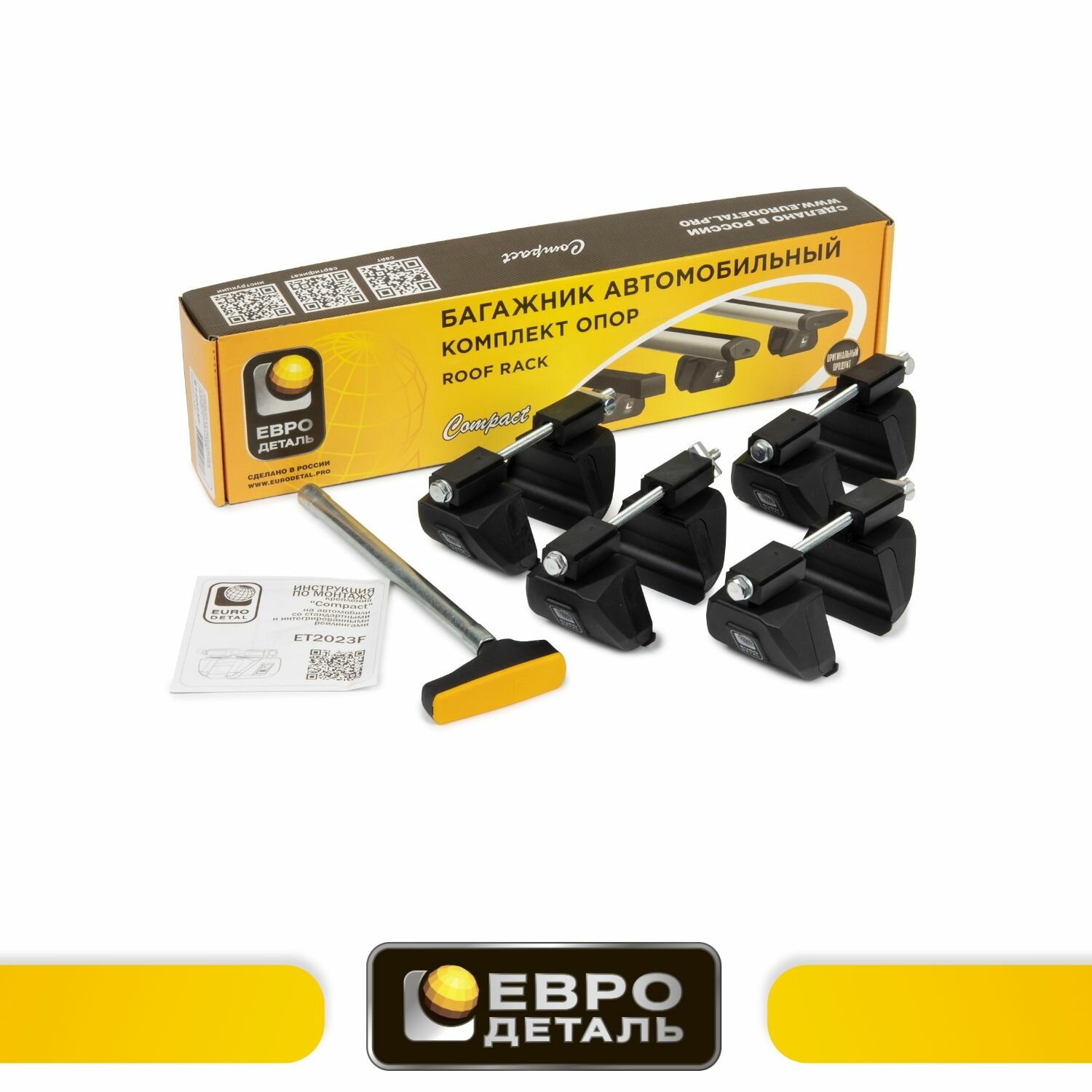 | Подробная комплектация | Комплектация: 4 опоры Евродеталь Compact ET2023F в фирменной желтой коробки. 2 Перекладины. Фирменный ключ для затяжки. Инструкция. |
