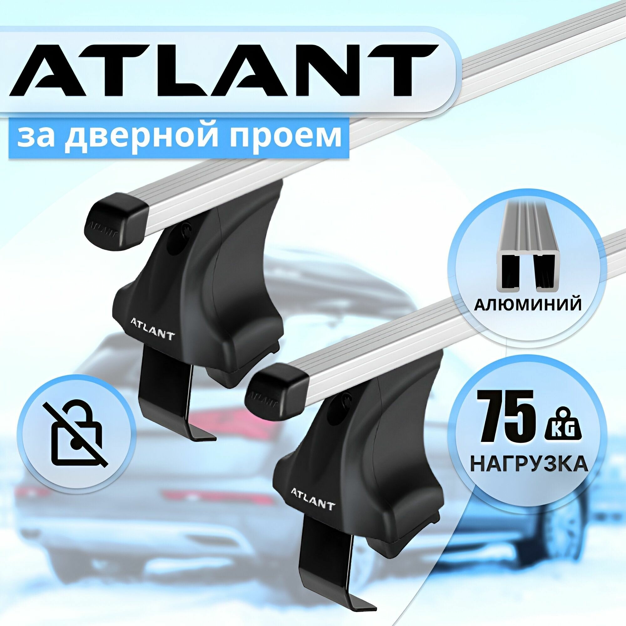 Багажник Атлант за дверной проем VOLKSWAGEN Polo 4-дв. седан 2020-н. в, поперечины усиленные типа крыло, 90 кг, 126 см, с замком