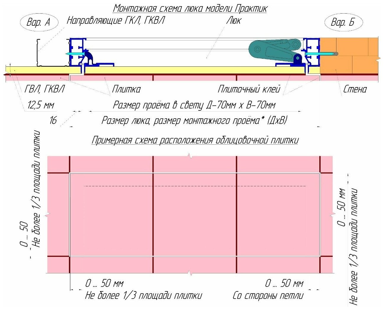 Ревизионный люк Формат КН 40–50 настенный под плитку ПРАКТИКА