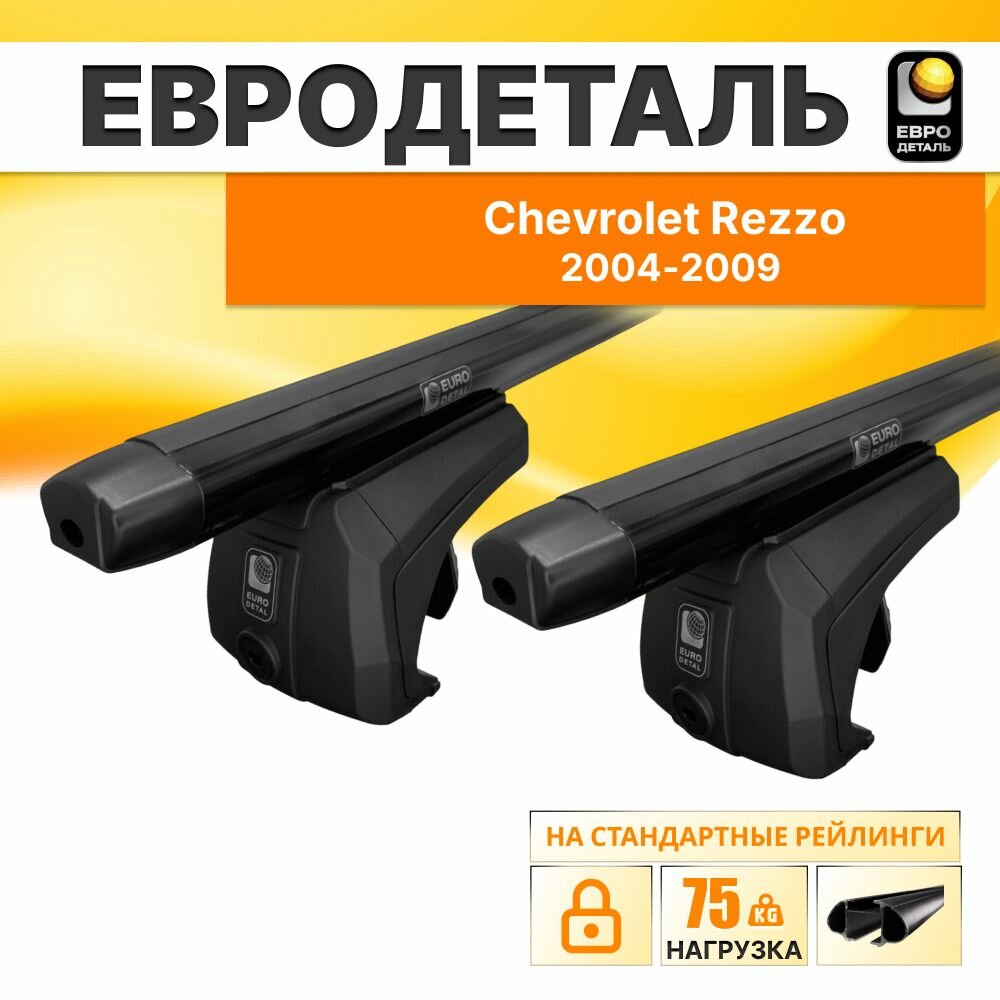 Багажник на рейлинги Шевроле Реззо 2004-2009 минивэн / Chevrolet Rezzo Багажник на крышу с крыловидными черными поперечинами / Автобагажник без замка / Евродеталь