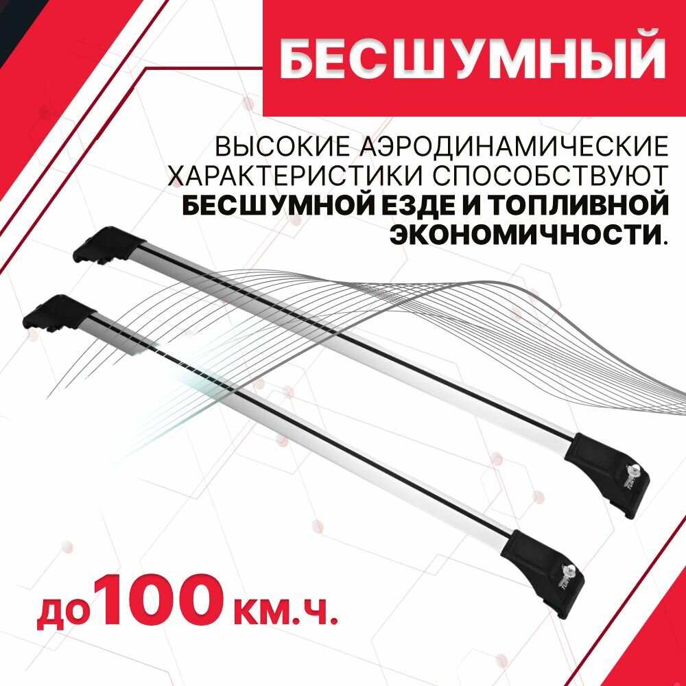 Багажник Turtle Tourmaline V2 для Porsche Macan / Порше Макан 5 дв. 2014-н. в. : на интегрированные рейлинги - Аэродинамические поперечины, с замком. интересное: