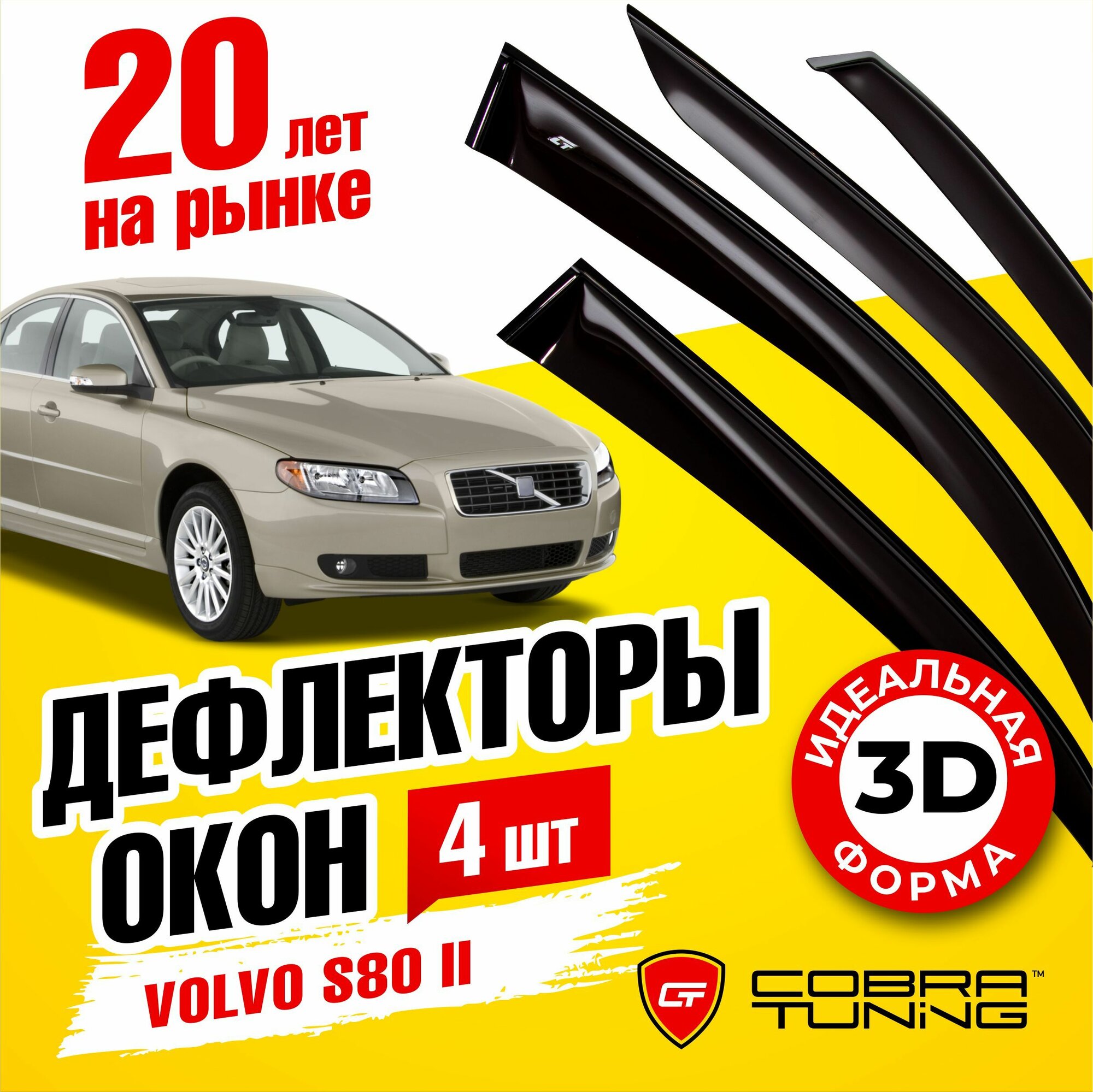 Купить Дефлекторы боковых окон для Volvo S80 2 (Вольво) 2006-2016, ветровики на двери автомобиля, Cobra Tuning