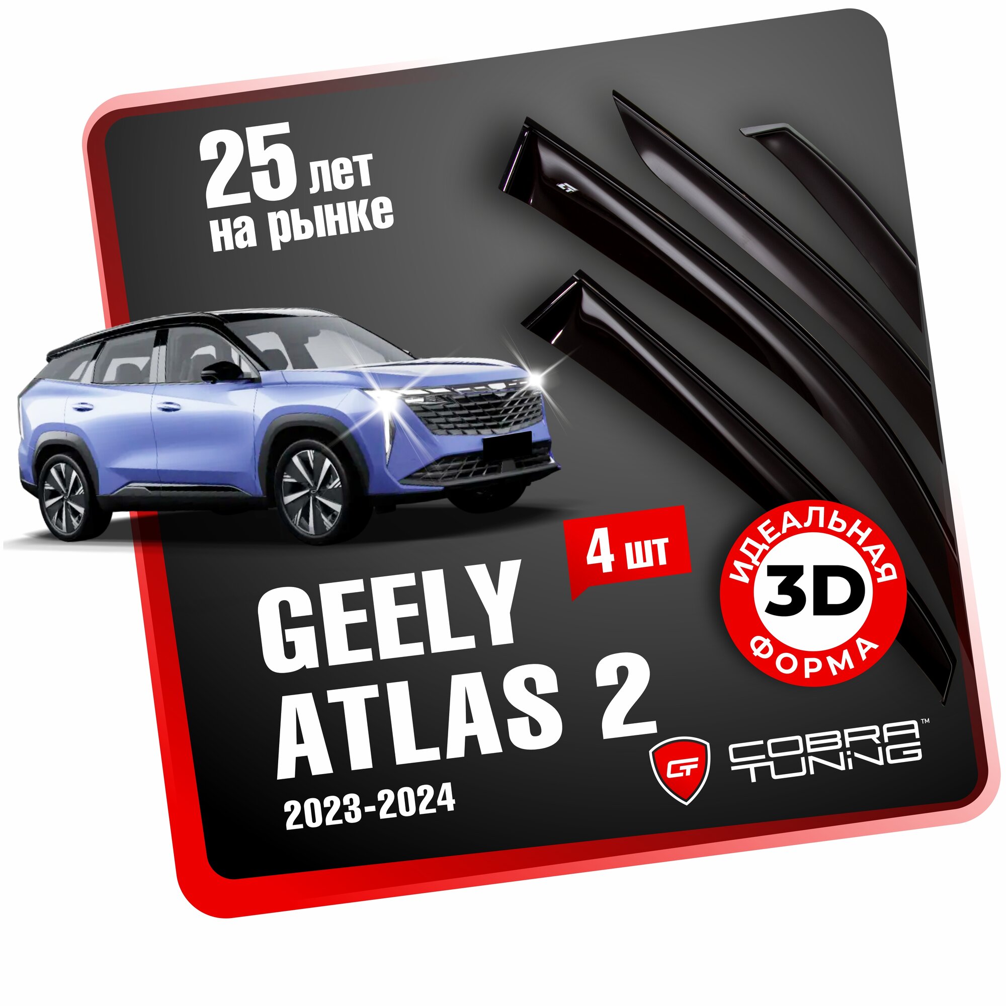 Купить Дефлекторы боковых окон для автомобиля Geely Atlas 2 (Джили Атлас) внедорожник 2023-2024, ветровики на двери автомобиля, Cobra Tuning.