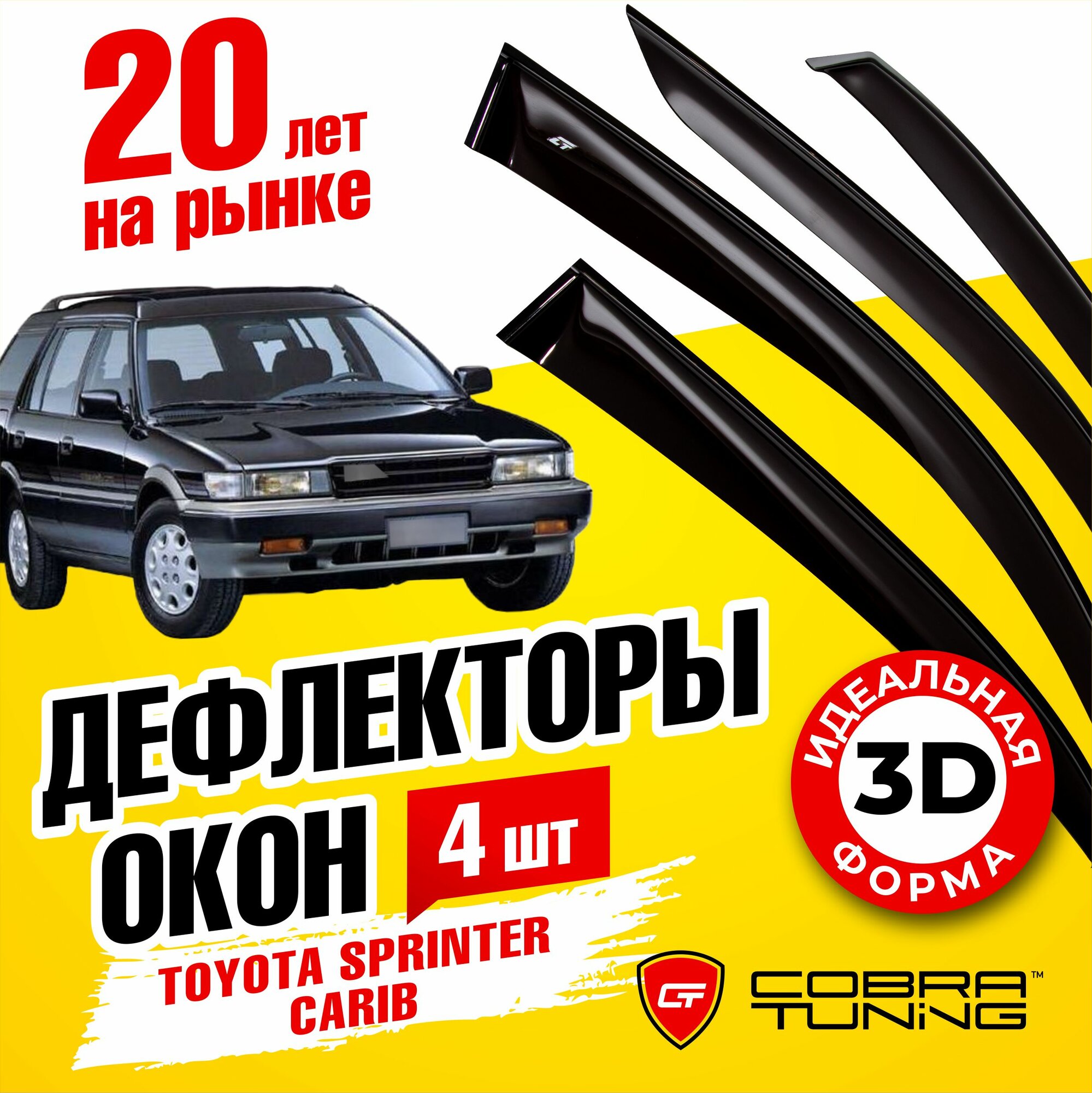Купить Дефлекторы боковых окон для Toyota Carib (Тойота Кариб) 1988-1995, ветровики на двери автомобиля, Cobra Tuning