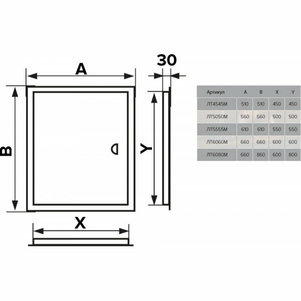 Люк ревизионный Evecs ЛТМ отверстие 600х600, общий размер 660х660 (окрашенная сталь)