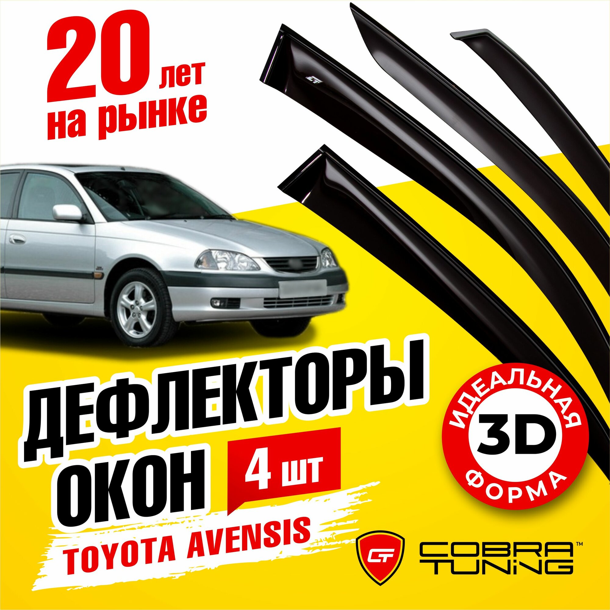 Купить Дефлекторы боковых окон для Toyota Avensis (Тойота Авенсис) седан 1997-2002, ветровики на двери автомобиля, Cobra Tuning