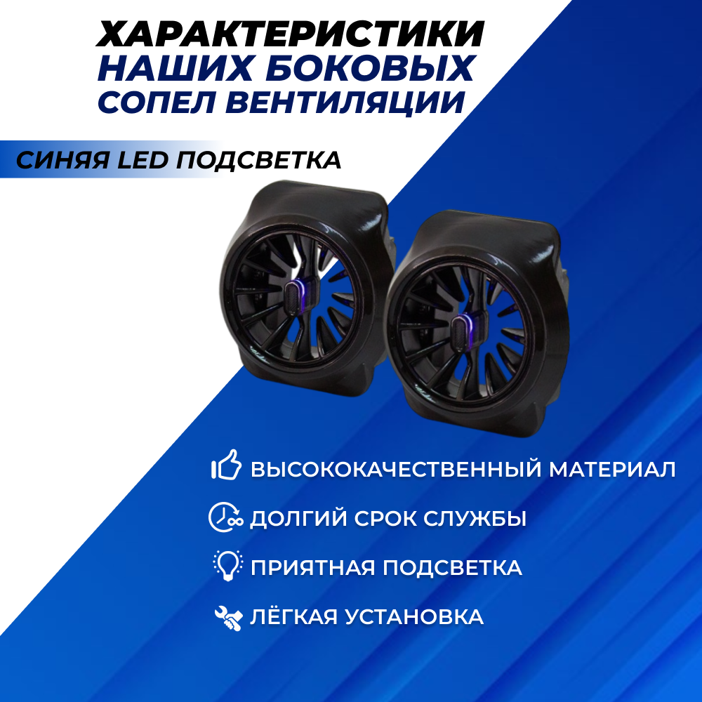 Дефлекторы 2107 печки боковые синяя LED подсветка в стиле АМГ 2шт. сопла воздуховода с регулировкой глянцевые AMG для обогрева стекла на панель приборов, облицовка черный лак