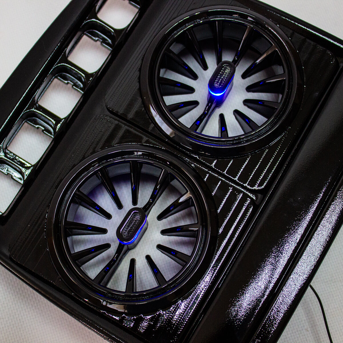 Сопла воздуховода Гранта седан лифтбек спорт, Гранта FL Ларгус Датсун mi-do дефлектор в стиле AMG (mini ver 2.0) регулируемое с синей подсветкой - черный лак 1шт.