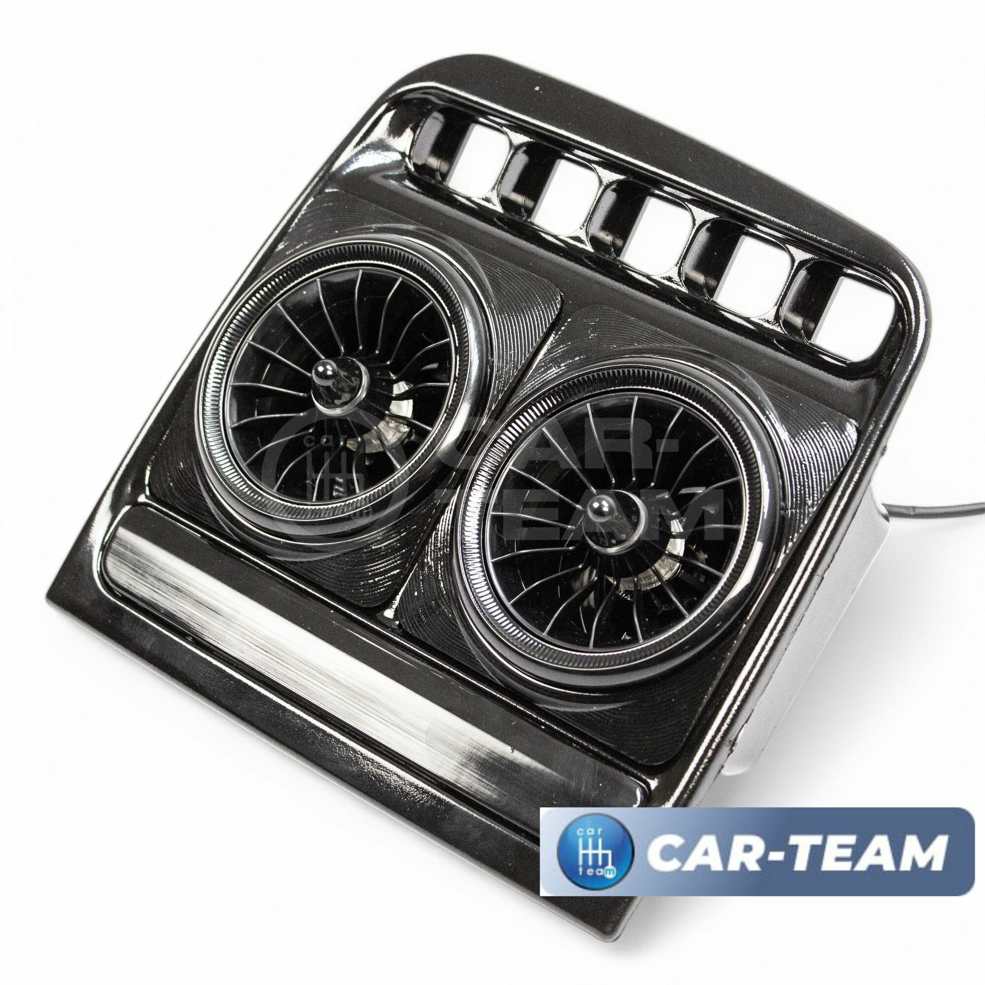 Дефлекторы воздуховода AMG 2шт. ВАЗ 2107, сопла на панель приборов с регулировкой цвет хромированные с облицовкой черный мат белая подсветка в стиле АМГ