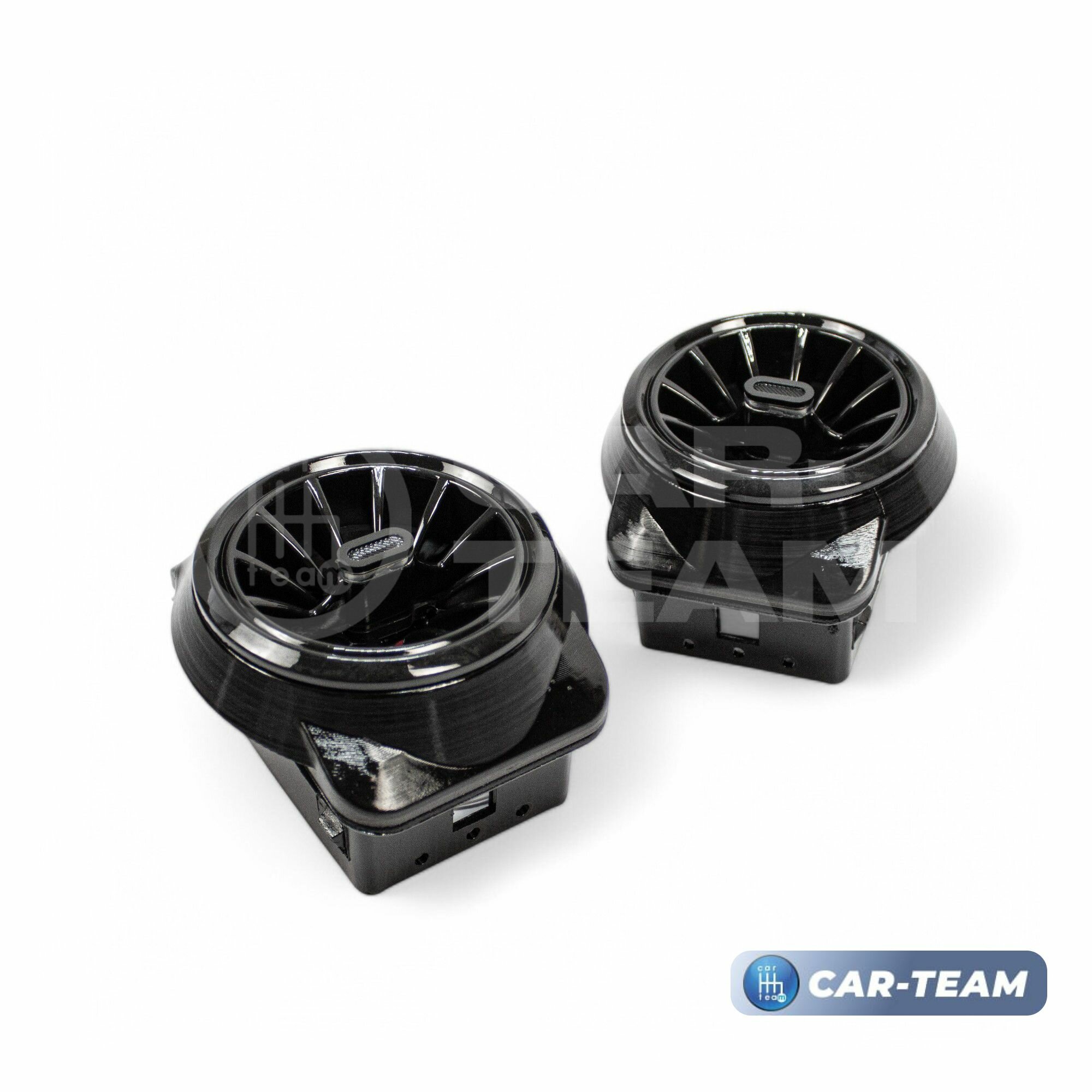 Дефлекторы воздуховода AMG 2шт. ВАЗ 2107, сопла на панель приборов с регулировкой цвет хромированные с облицовкой черный мат белая подсветка в стиле АМГ