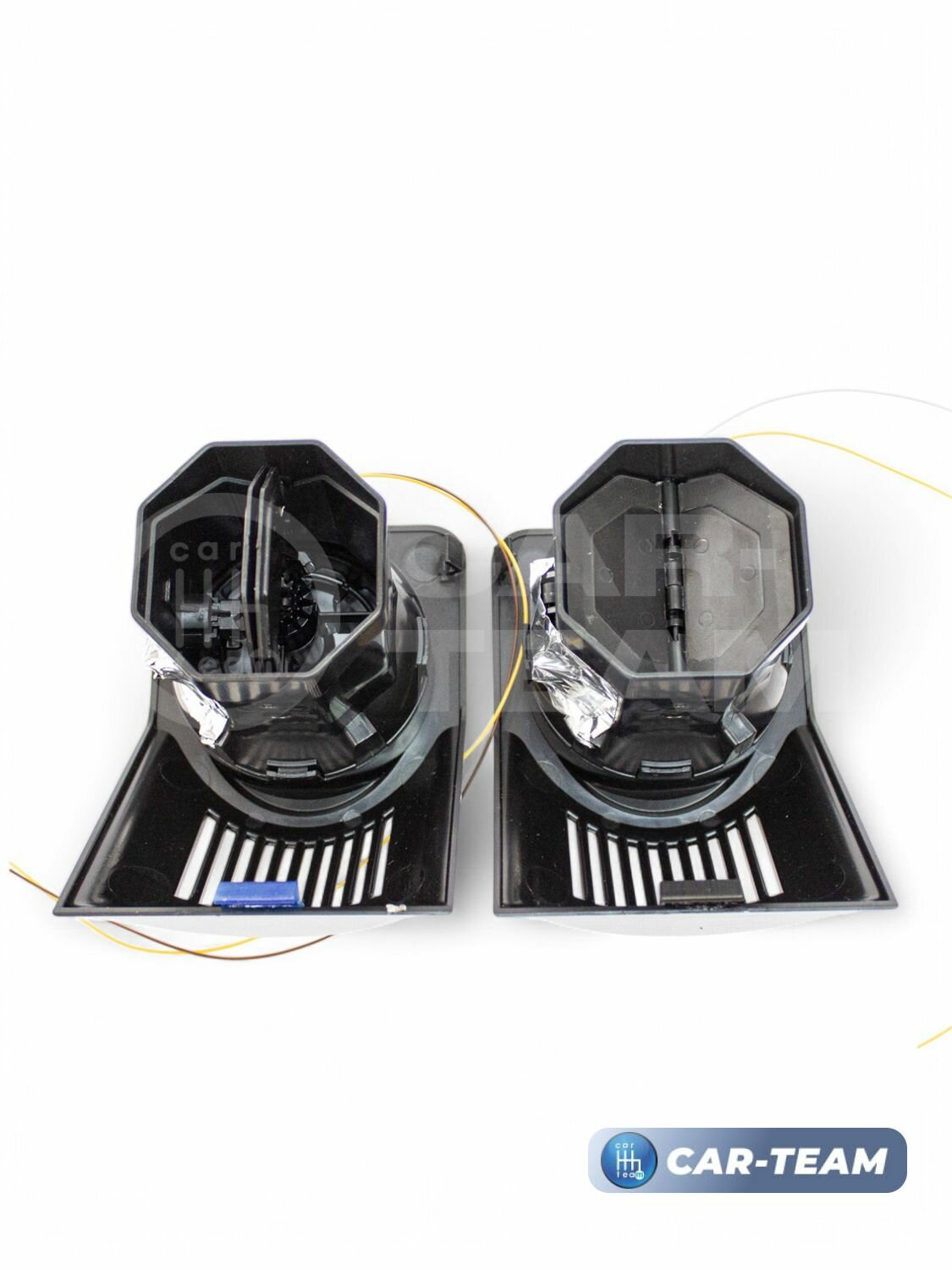 Дефлекторы 2107 печки боковые синяя LED подсветка в стиле АМГ 2шт. сопла воздуховода с регулировкой глянцевые AMG для обогрева стекла на панель приборов, облицовка черный лак