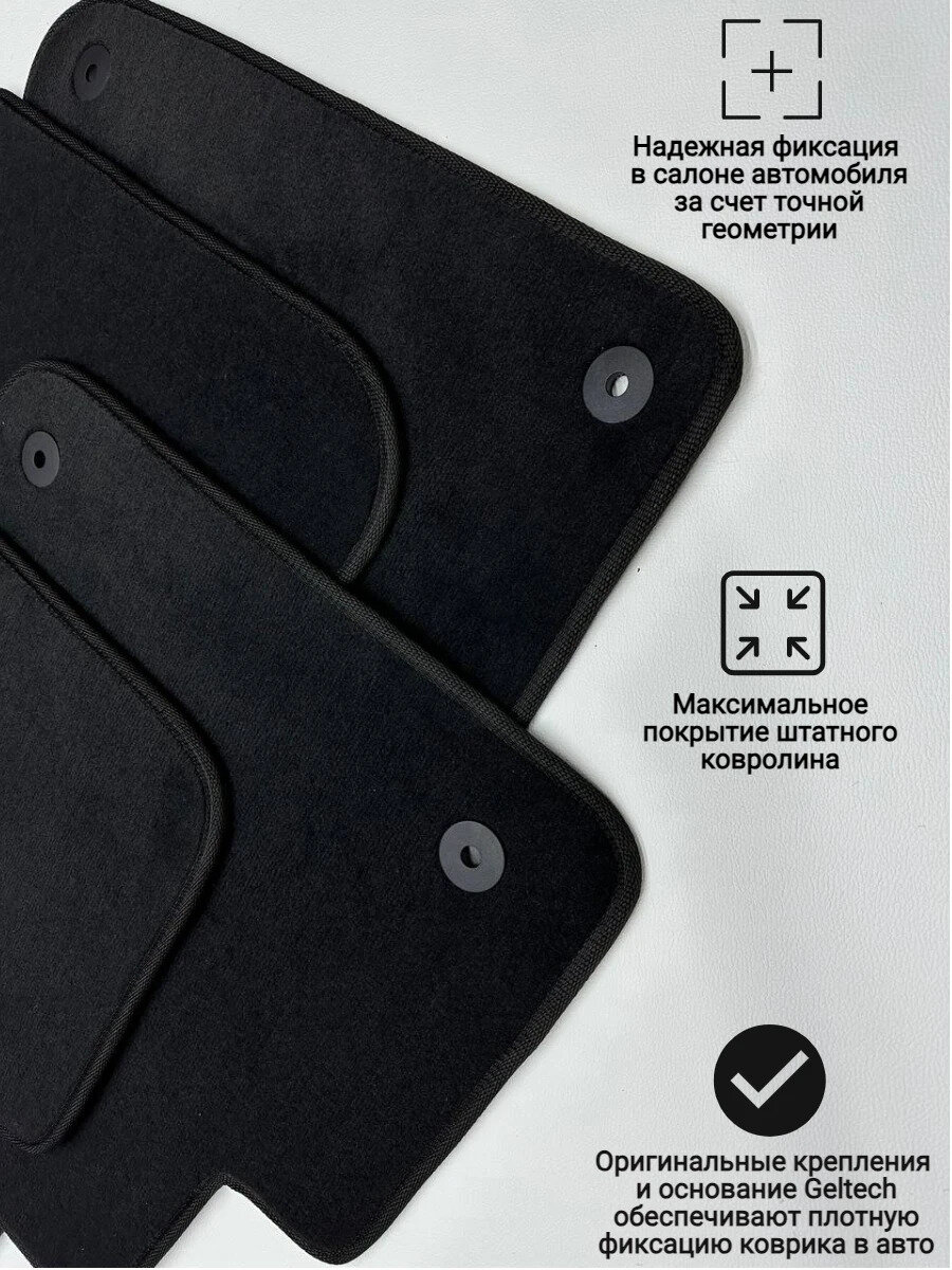 | Подробная комплектация | Водительский коврик - 1 шт Передний пассажирский коврик - 1 шт Задний правый пассажирский коврик - 1 шт Задний левый пассажирский коврик - 1 шт Перемычка на тоннель - 1 шт |