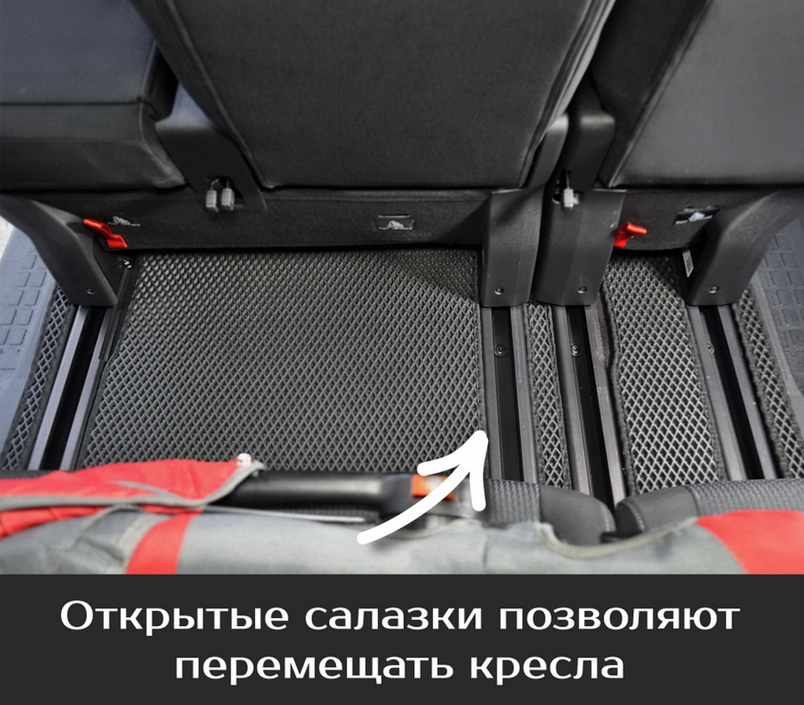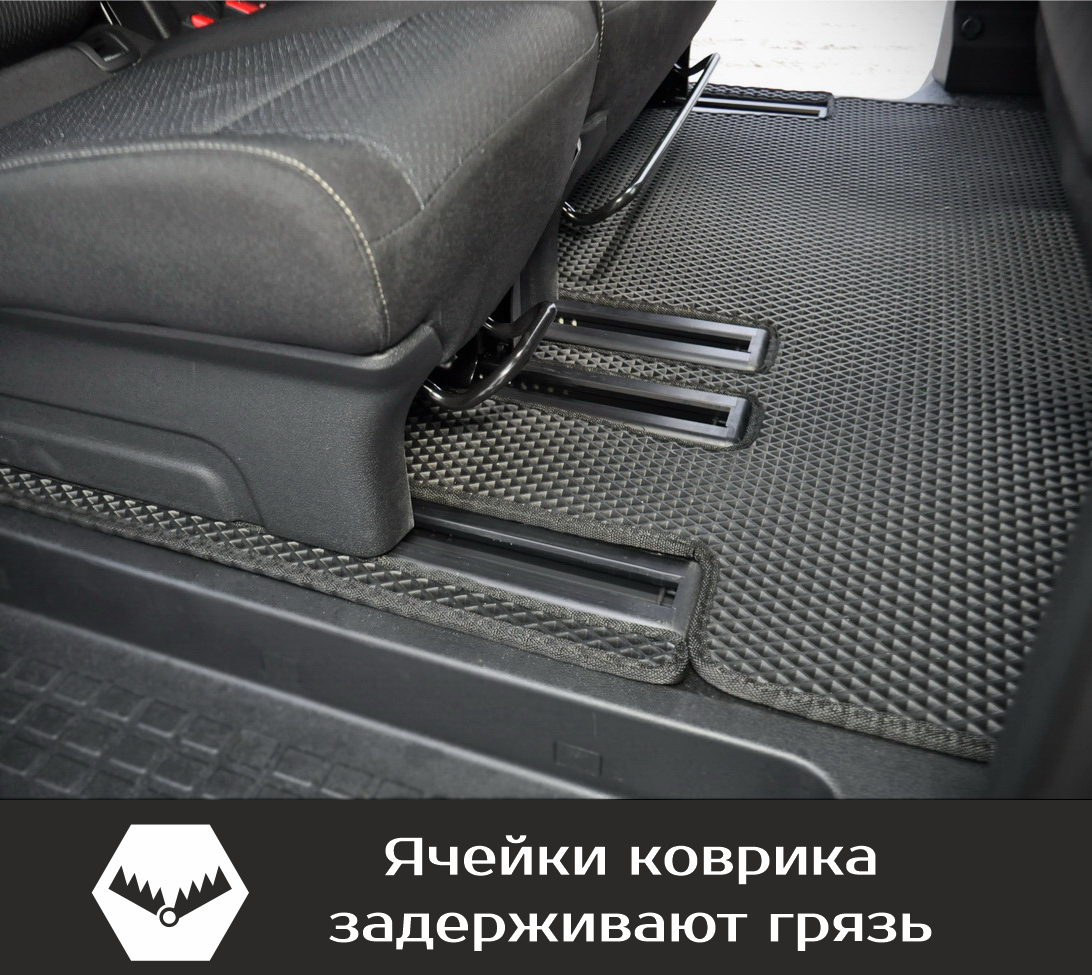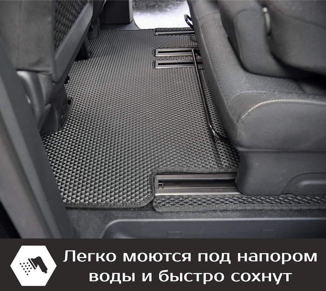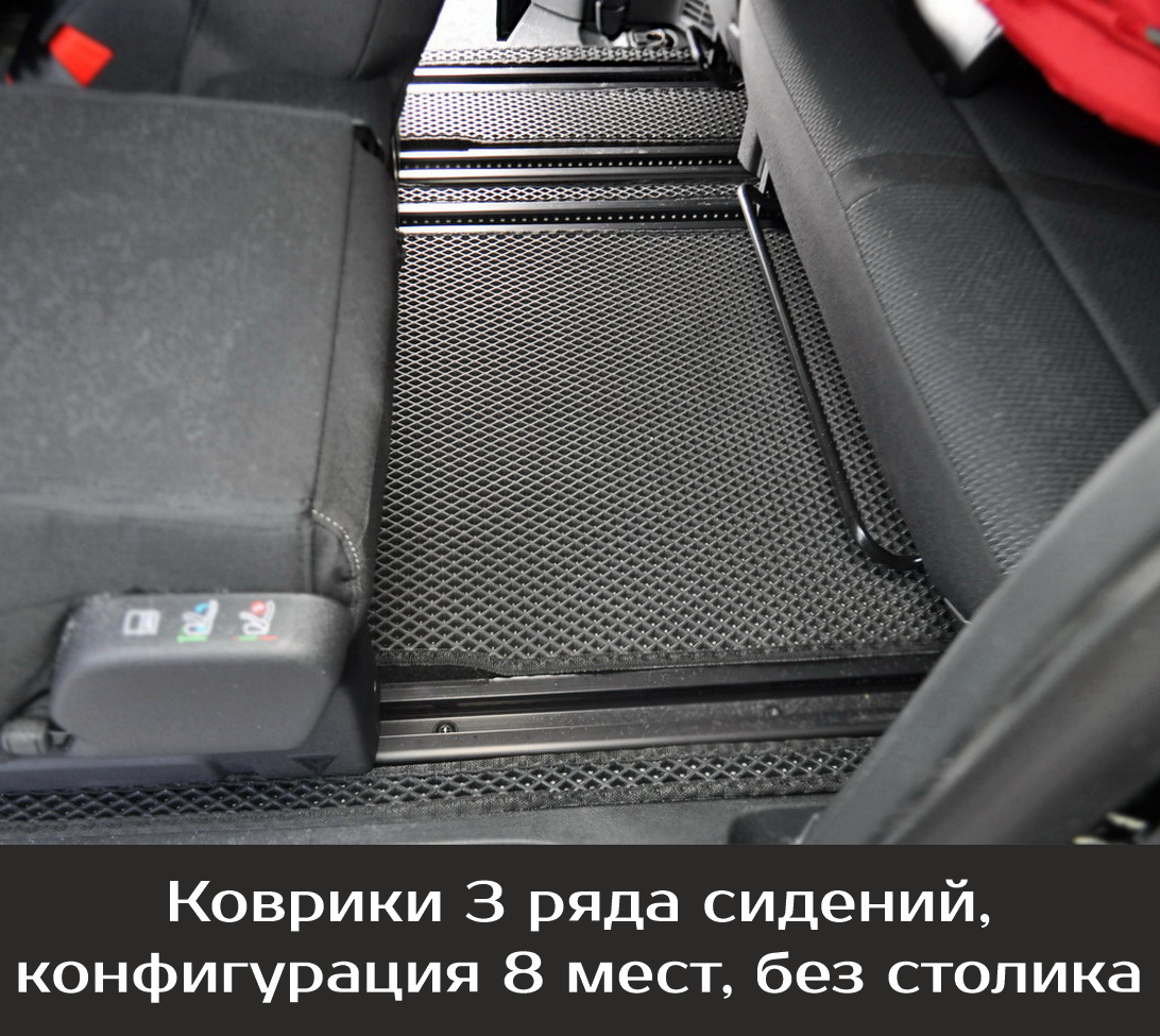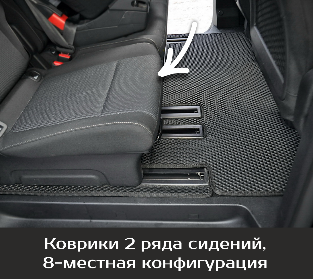 СохранитьКоврики EVA для Peugeot Traveller \ Пежо Тревеллер (2016-н/в). Версия 8 мест, «Long». Комплект в салон и багажник интересное: