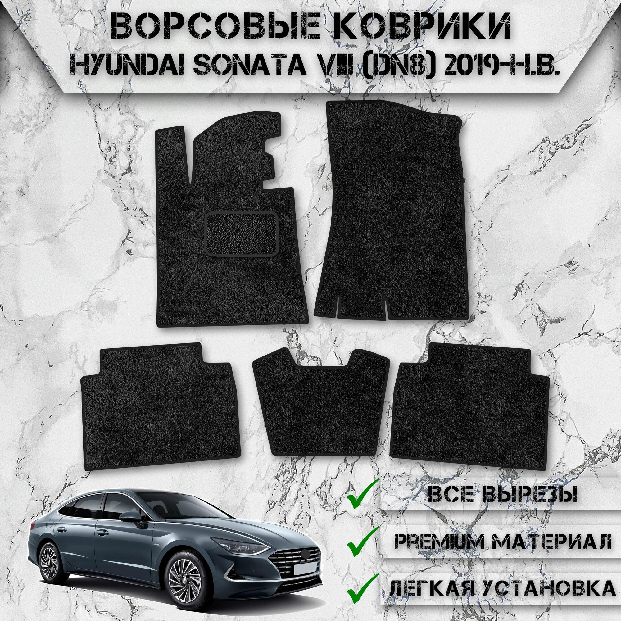 Ворсовые коврики "Премиум" для авто Хюндай Соната / Hyundai Sonata (DN8) 2019-2024 Чёрный