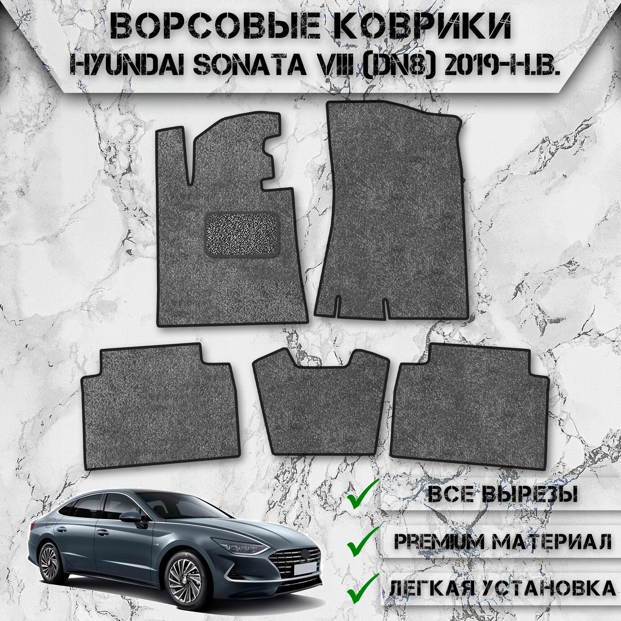 Ворсовые коврики "Стандарт" для авто Хюндай Соната / Hyundai Sonata (DN8) 2019-2024 Г. В. Чёрный С Серым Кантом