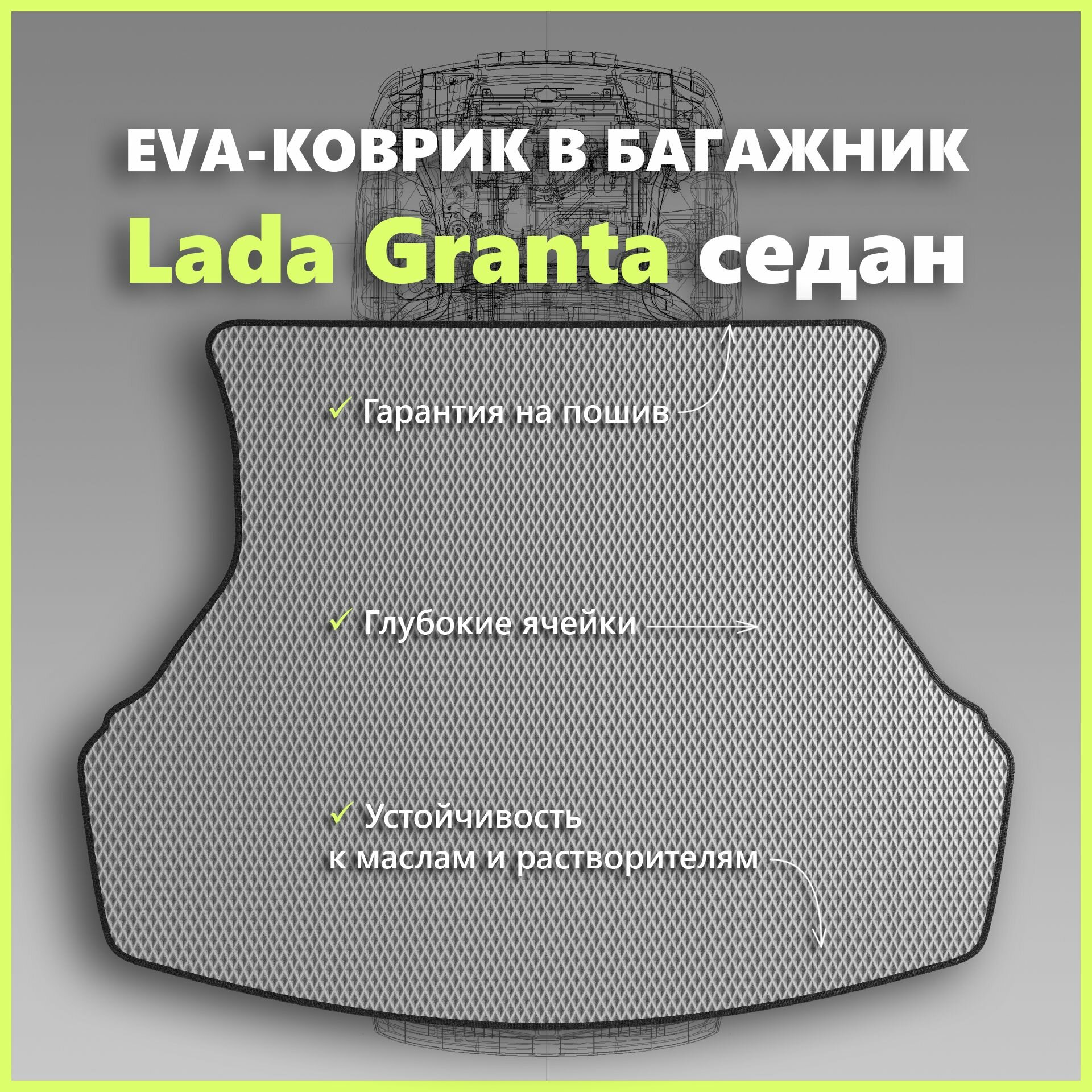 Коврик EVA/ЕВА в багажник Lada Granta седан/Лада Гранта седан, черный с серым кантом