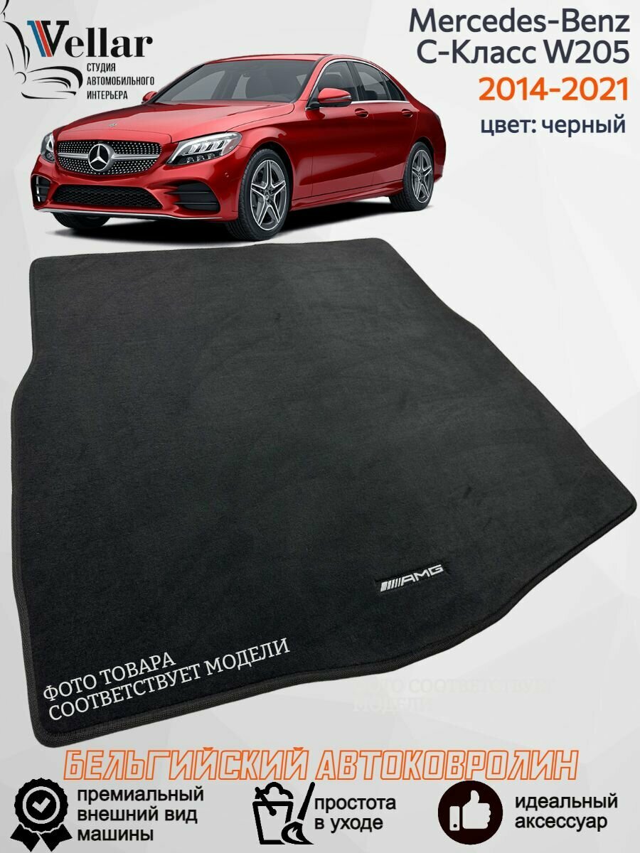 Ворсовый коврик в багажник автомобиля Mercedes-Benz C-класс W205/ 2014-2021/ автомобильные коврики в машину Мерседес С класс w205 интересное: