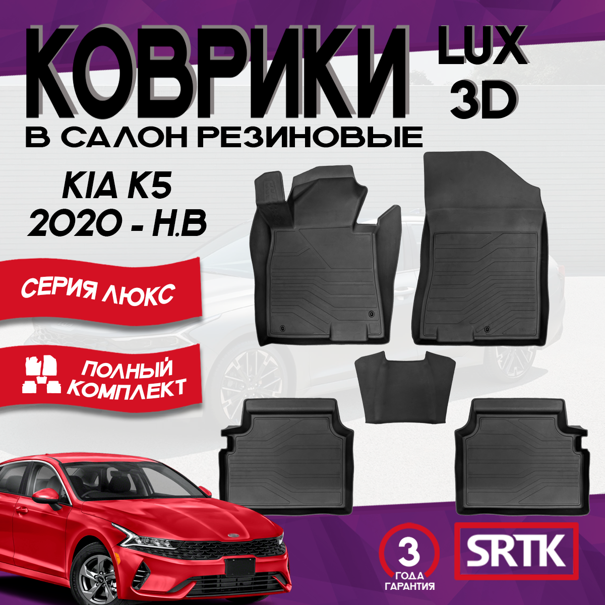 Коврики резиновые Киа К5 (2020-)/ KIA K5 (2020-) 3D LUX SRTK (Саранск) комплект в салон интересное: