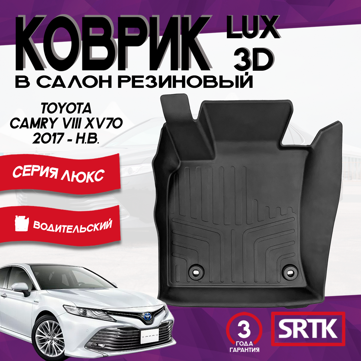Коврик резиновый Тойота Камри ХВ70 (2017-) Toyota Camry (XV70)(2017-) 3D LUX SRTK (Саранск) водительский в салон интересное: