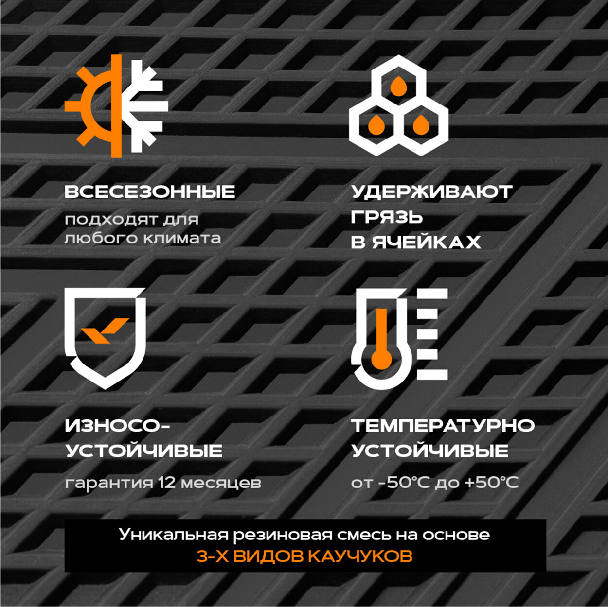 Купить Коврик салонный резиновый (черный) для LADA Niva Legend (21-Н. В.) Ячеистый Ромб (борт 4 см)