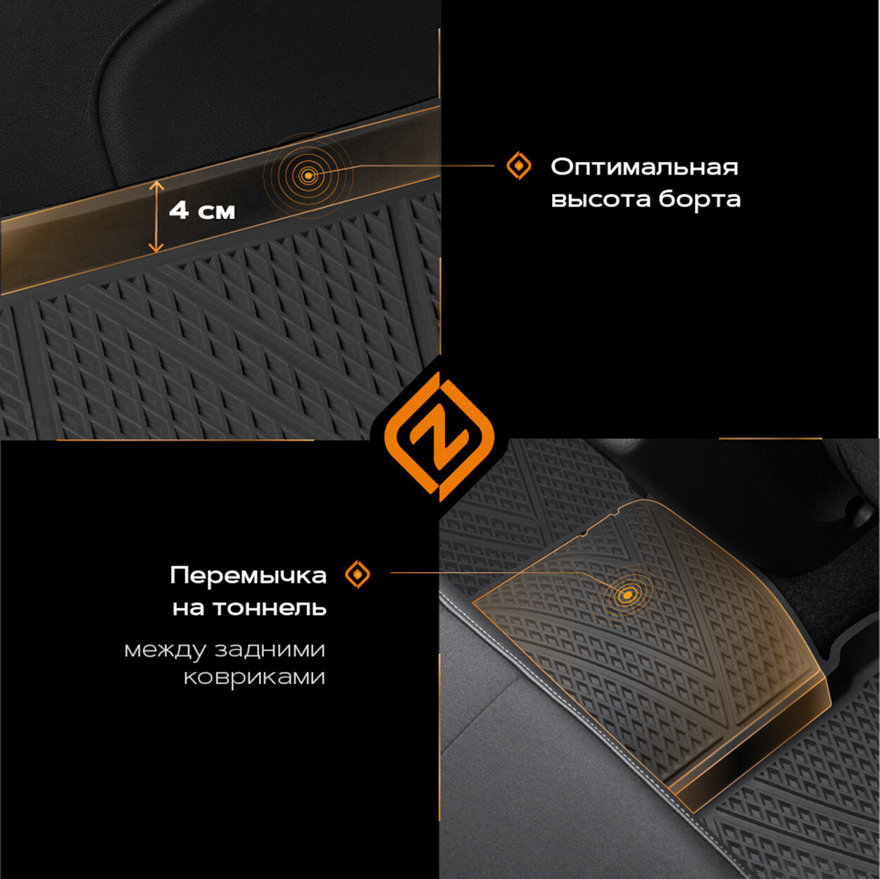 Коврик салонный резиновый (черный) для LADA Largus (12-21) 7-ми местный (Борт 4см)