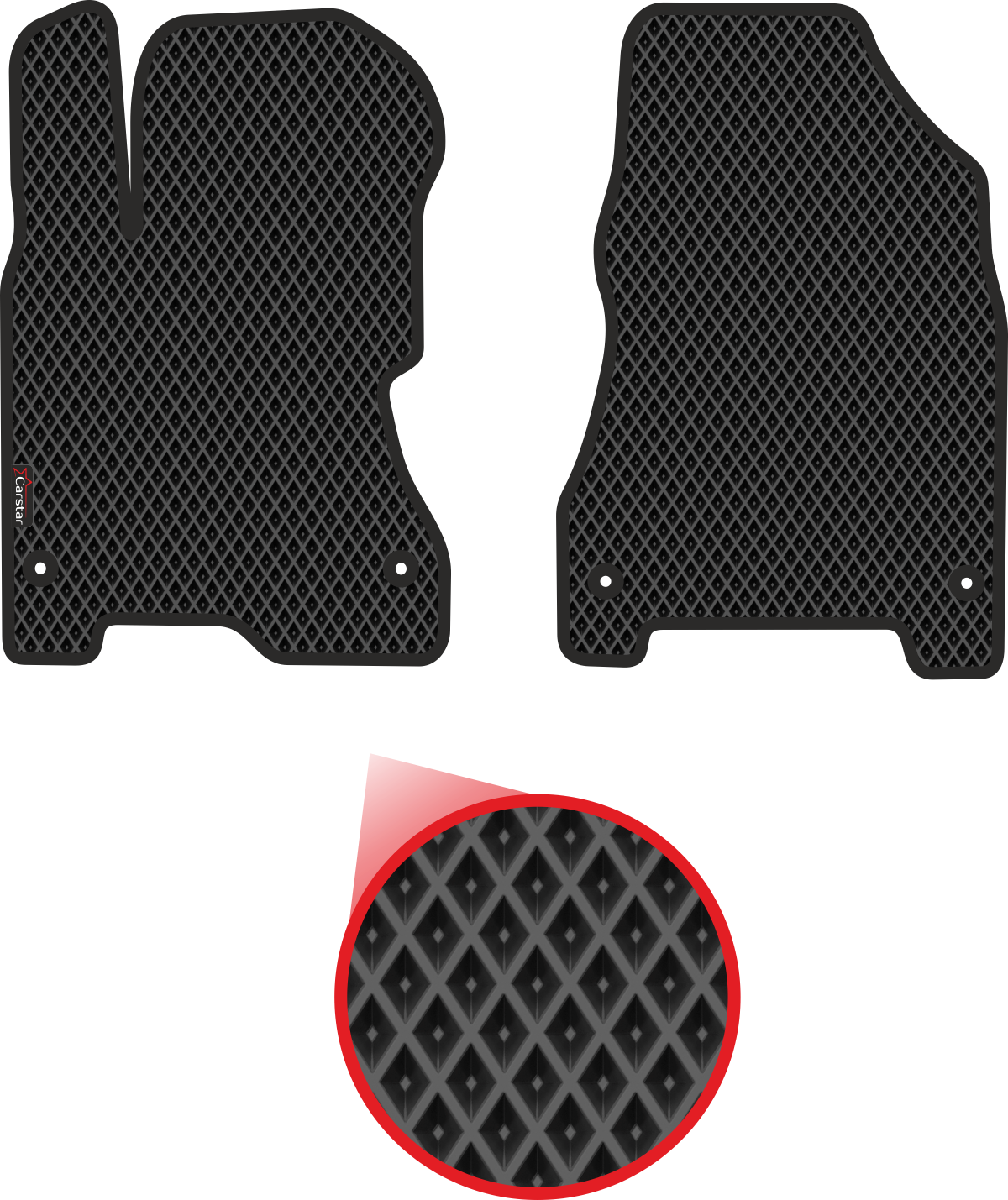 Передние коврики EVA для Renault Koleos I (2008-2016), чёрные с чёрным кантом, ячейка - ромб интересное: