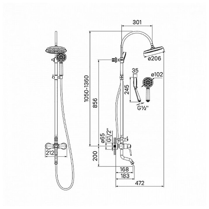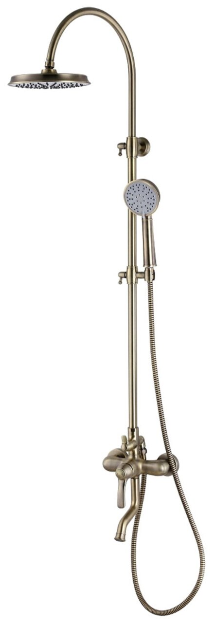 Душевая система IDDIS Oldie OLDBR3Fi06 с верхним душем 205 мм и ручной лейкой D100 мм 3F со смесителем бронза
