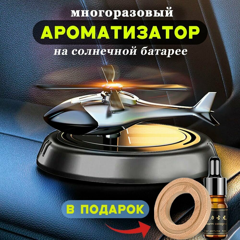 Автомобильный ароматизатор на солнечной батарее, аромадиффузор освежитель воздуха в машину, вонючка вертолетик интересное: